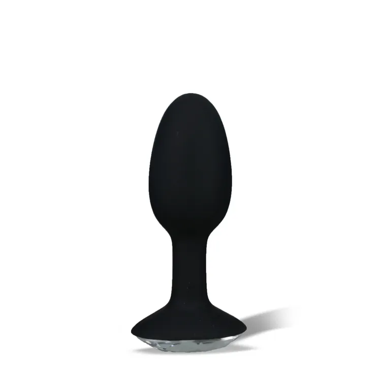 Красива чорна анальна пробка невеликого розміру з блискучим прозорим кристалом в основі.
