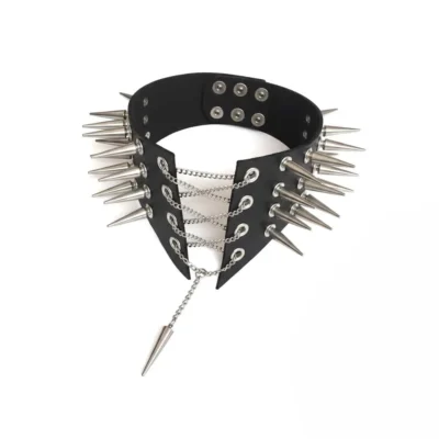 Бічні шипи додають агресії та характеру — це деталь, яка працює з будь-якого ракурсу. Спереду — провокаційна шнурівка на ланцюгах. Переплетення металу створює напруження, посилює драму й притягує погляд до центру композиції. Підвіска додає динаміки — у русі вона вловлює світло та підсилює ефект.