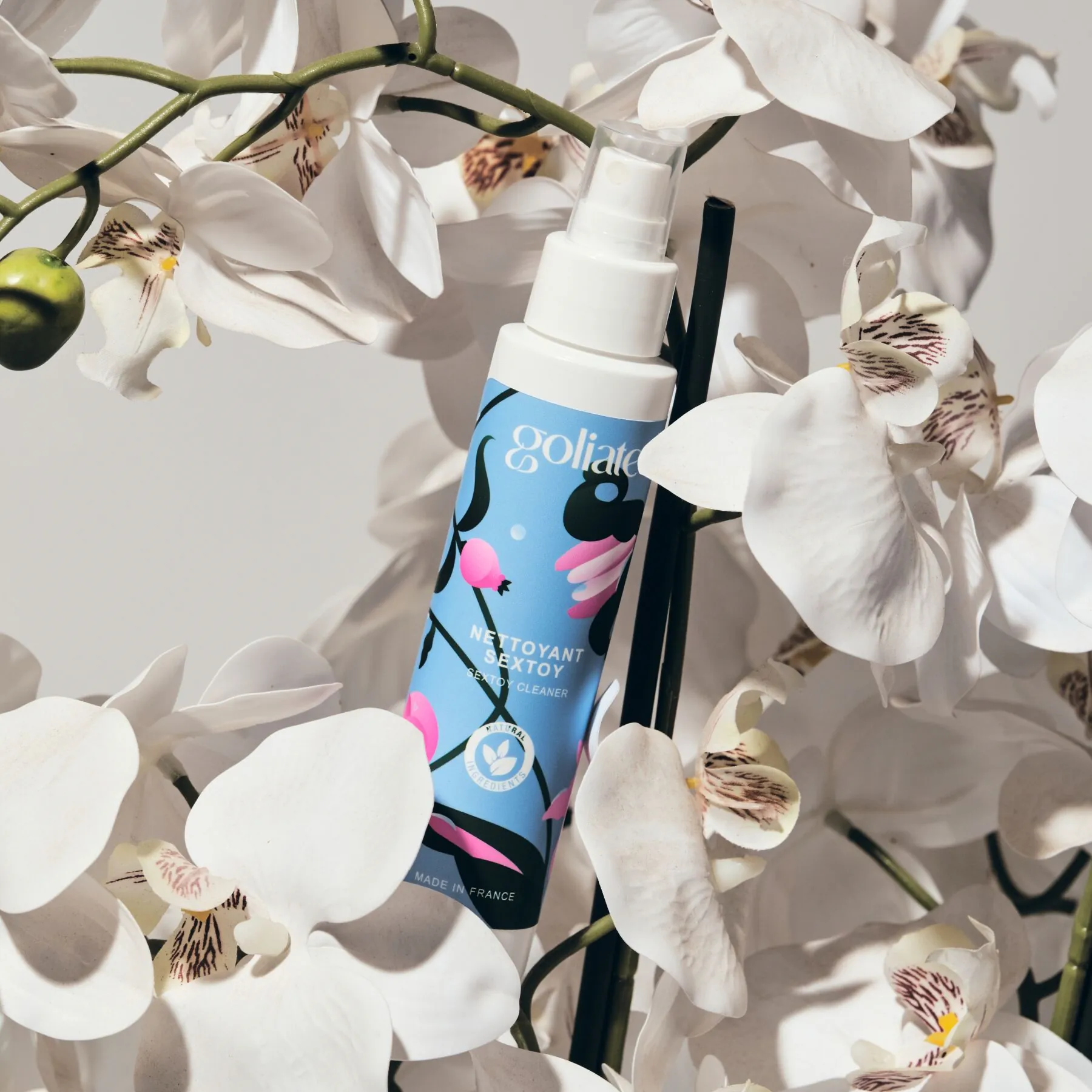 Антибактеріальний спрей для іграшок Goliate Nettoyant Sextoy виготовлений на індивідуальне замовлення в спеціалізованій лабораторії на півдні Франції. Не містить штучних ароматизаторів та агресивних хімічних сполук.