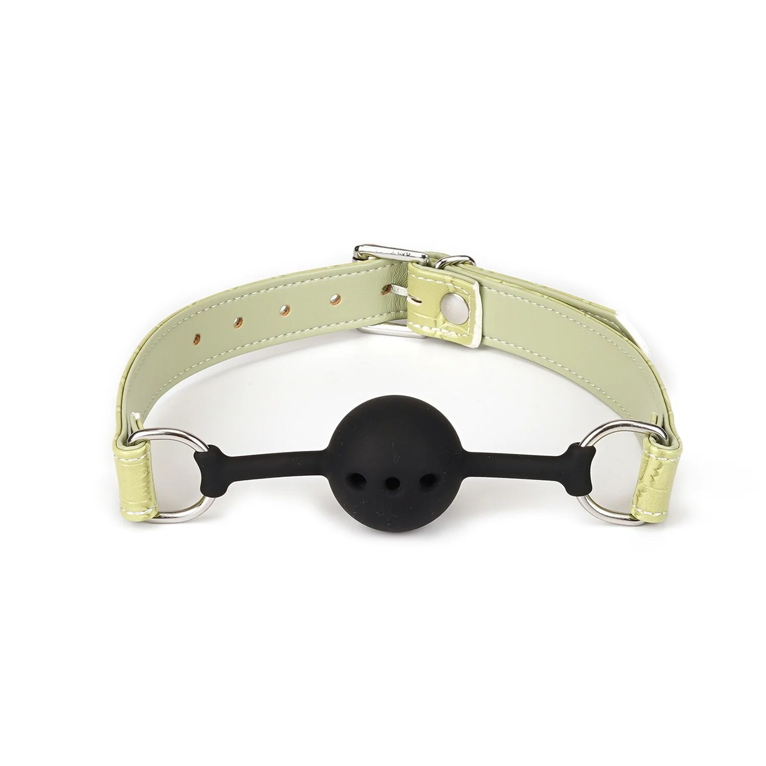 Повітропроникний кляп-кулька. Спеціальні отвори дають змогу дихати під час сесії. Кріпиться за допомогою ремінця, регулюється за обсягом голови від 46,6 до 61 см. Діаметр кульки 4,4 см.