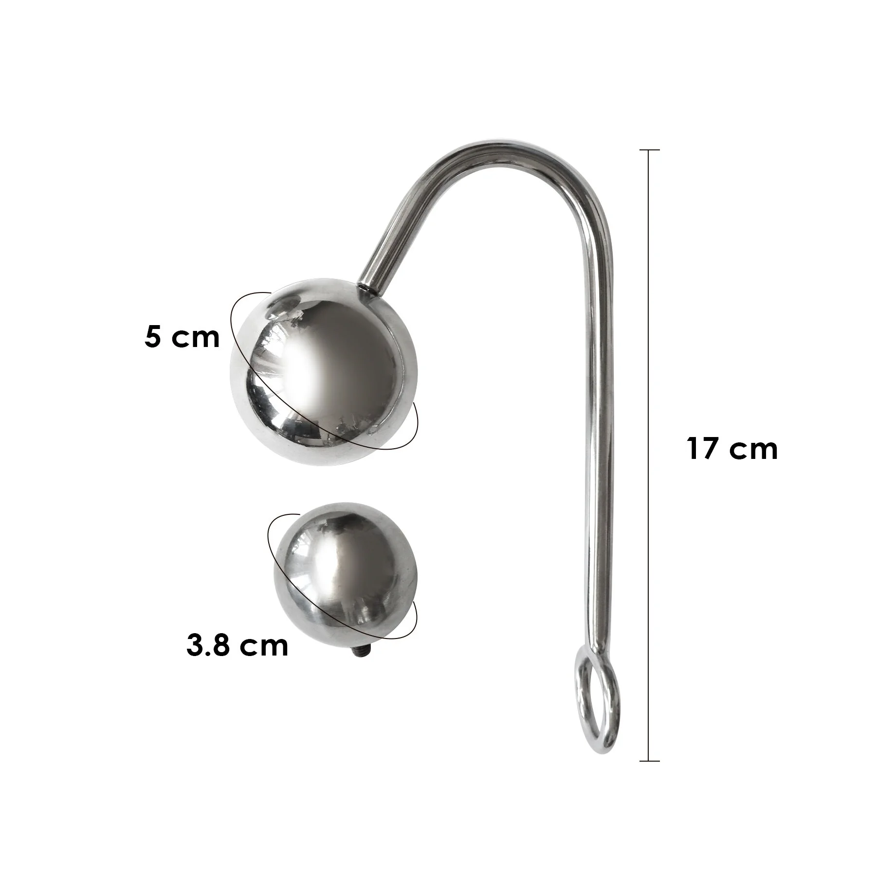Розміри: обхват шиї 30–43 см, обхват зап’ясть 16–20 см, довжина гака 17 см, діаметр кульок 5 та 3,8 см.