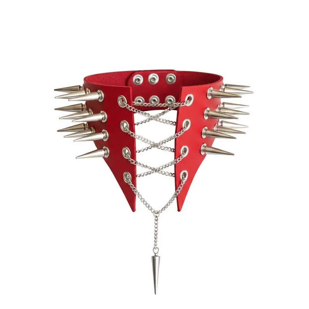 Чокер комір з шипами Art of Sex – Ariadne, натуральна шкіра, колір червоний, XS-M