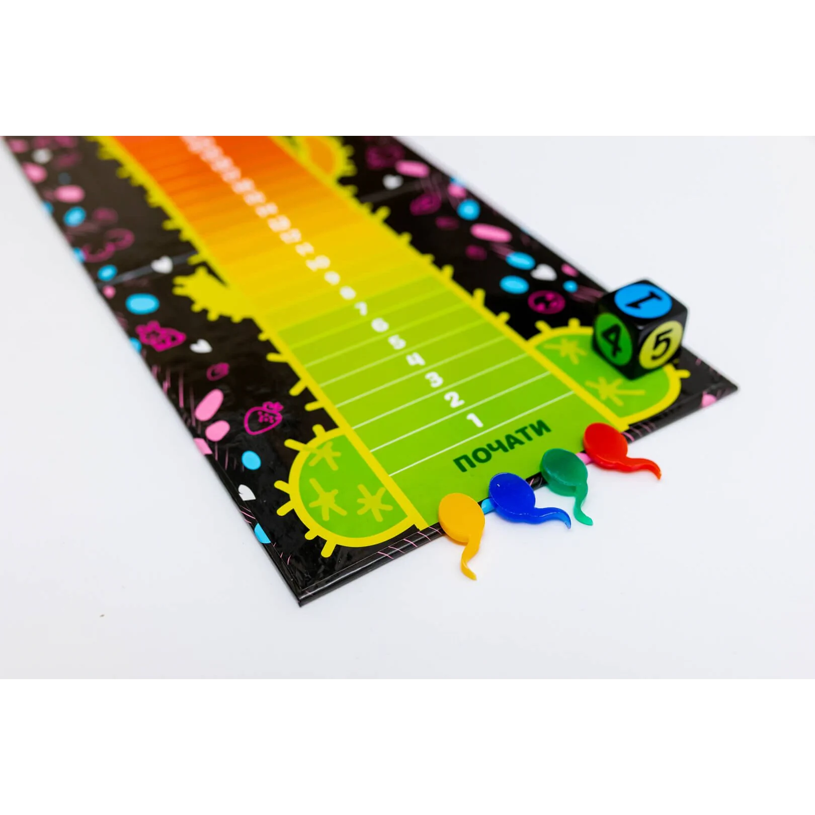 Правила: Учасники діляться на команди. Гравець для вибору завдання кидає кубик і тягне карту з тієї стопки карт, яка відповідає межі на кубику. Завдання можуть бути – пояснити, намалювати, або показати те, що зазначено на карті. Далі команда повинна вгадати, що показує, малює або пояснює їх гравець. Все це приправлено відіграванням певних емоцій і дій.