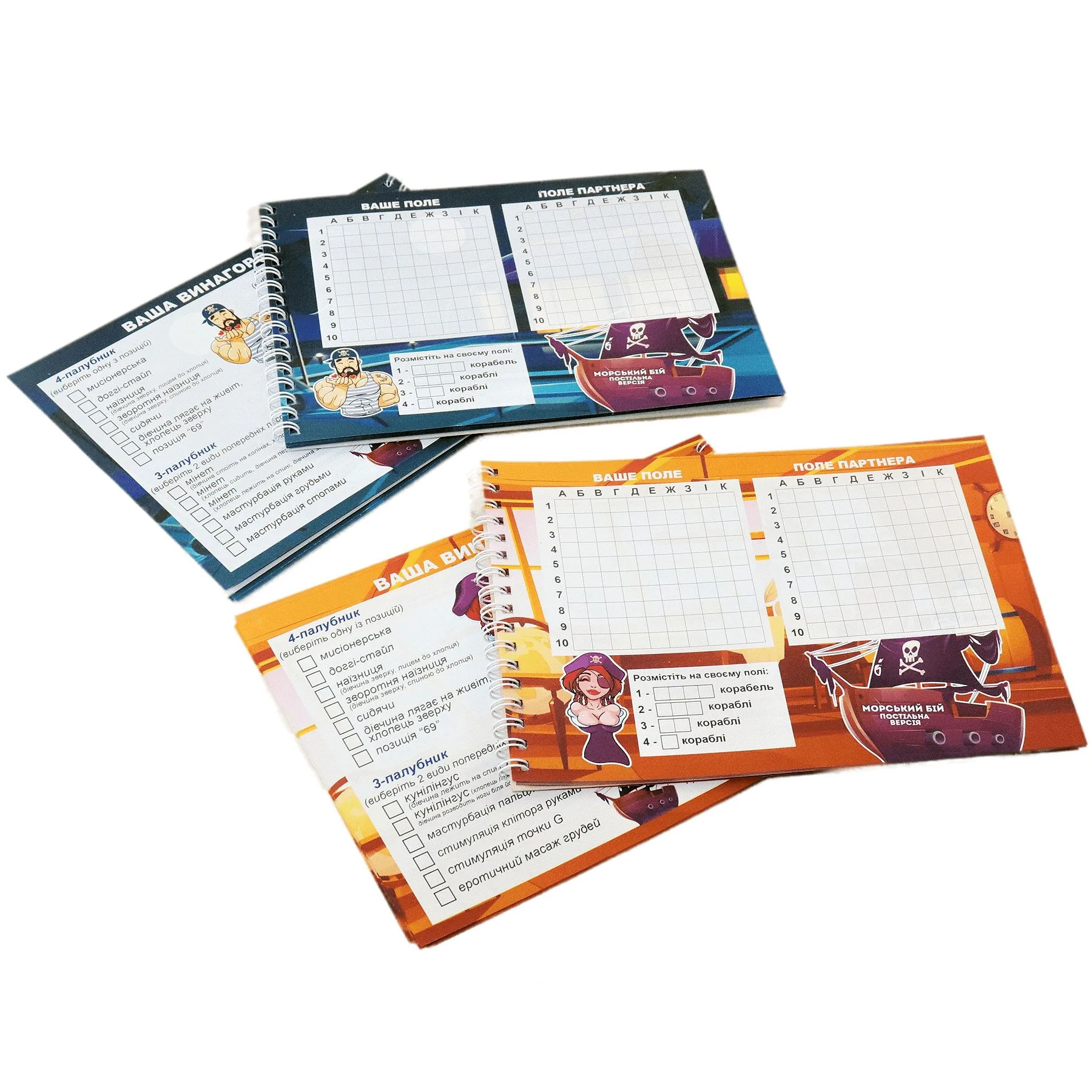 Ви коли-небудь грали в морський бій? Ну звичайно, адже це розвага здатна захопити не на одну годину! А якщо це буде морський бій для дорослих, де за кожен підбитий корабель передбачена еротична винагорода? Пропонуємо купити еротичну гру "Морський бій. Постільна версія", яка не тільки допоможе весело провести час, а й зблизить вас з партнером і допоможе краще пізнати сексуальні забаганки один одного. Вам знадобиться тільки ручка і трохи сміливості — і вперед, на абордаж!