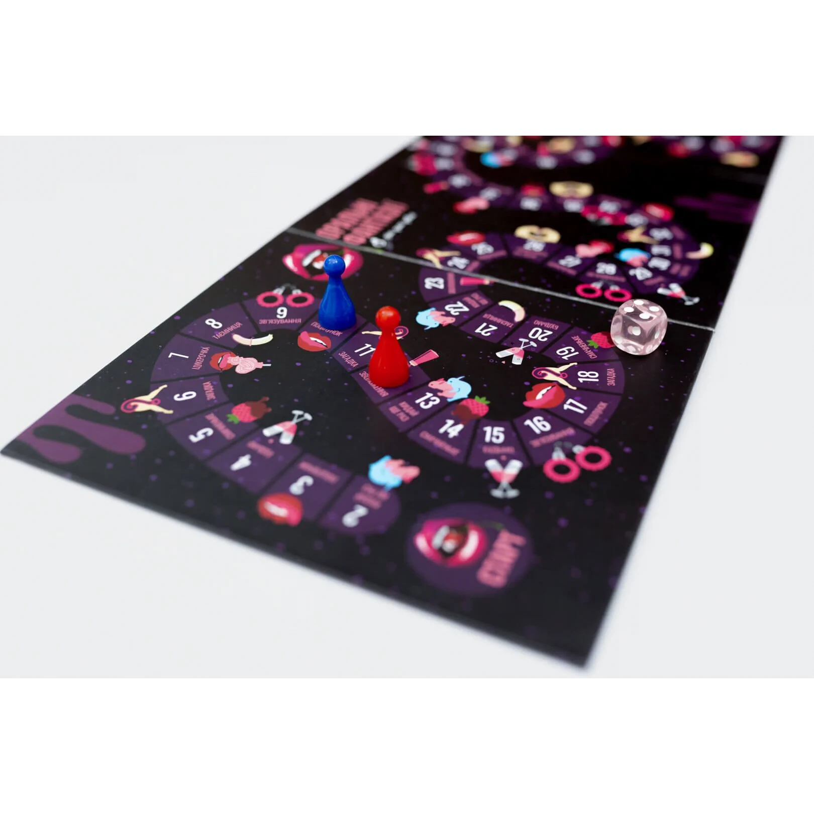 Стисло про правила: Ваше завдання ― кидати кубик та почергово рухатися по ігровому полю із завданнями. Кожна клітинка на ігровому полі має свій номер та пропонує виконати певну дію. Це той випадок, коли правила гри потрібно прочитати, адже там прописані дії, за які відповідає кожна клітинка, і які вам доведеться виконувати. Кожне поле має дію, крім поля «Цукерка». Потрапивши на нього, ви пропускаєте свій хід. Спробуйте пройти весь шлях до фінішу та не зійти з дистанції. Перемога й усе задоволення дістанеться тому, хто перший досягне поля «69».