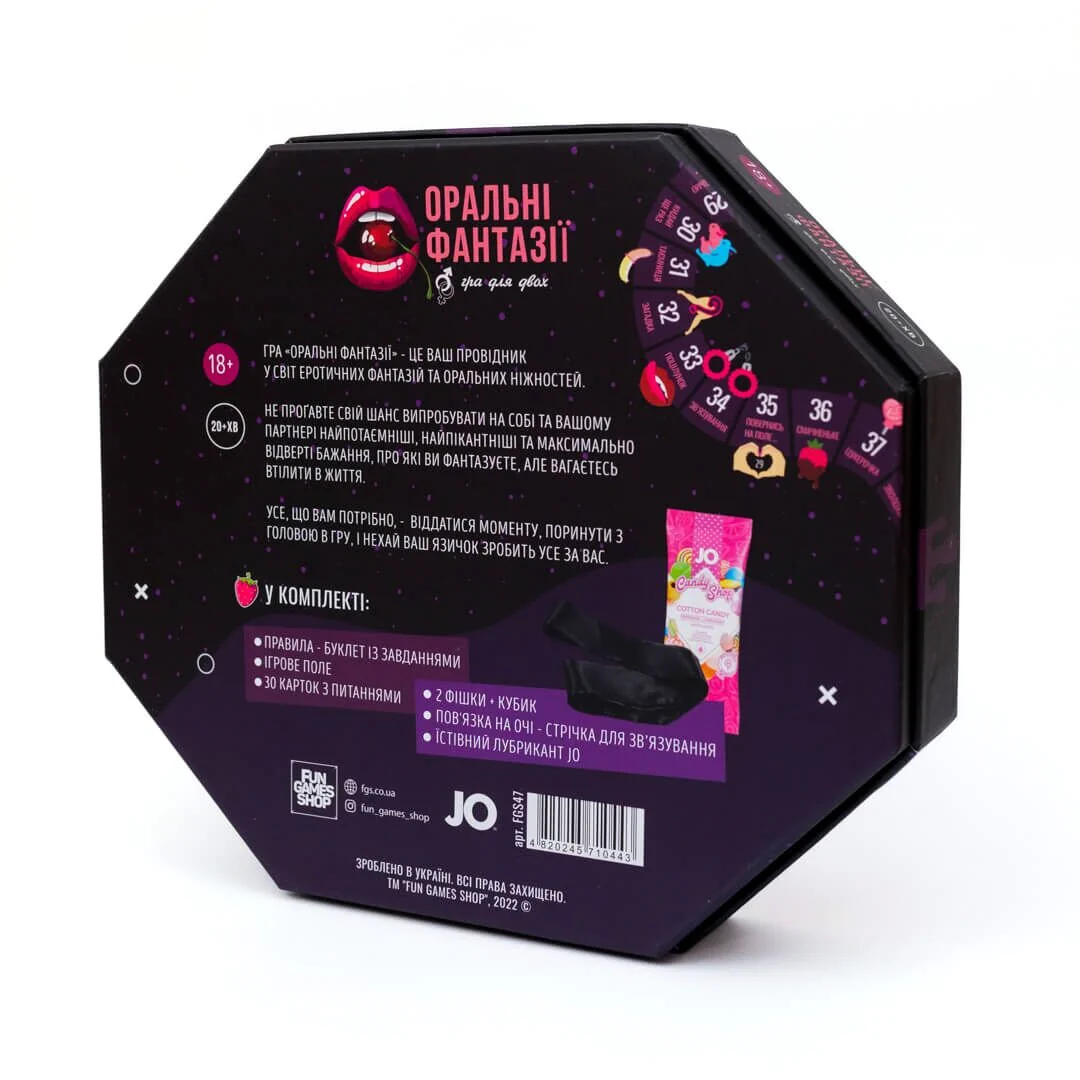 Опис: Гра «Оральні фантазії» ― це ваш провідник у світ еротичних фантазій та оральних ніжностей. Не проґавте свій шанс випробувати на собі та вашому партнері найпотаємніші, найпікантніші та максимально відверті бажання, про які ви фантазуєте, але вагаєтесь втілити в життя. Усе, що вам потрібно, ― віддатися моменту, поринути з головою в гру, і нехай ваш язичок зробить усе за вас.