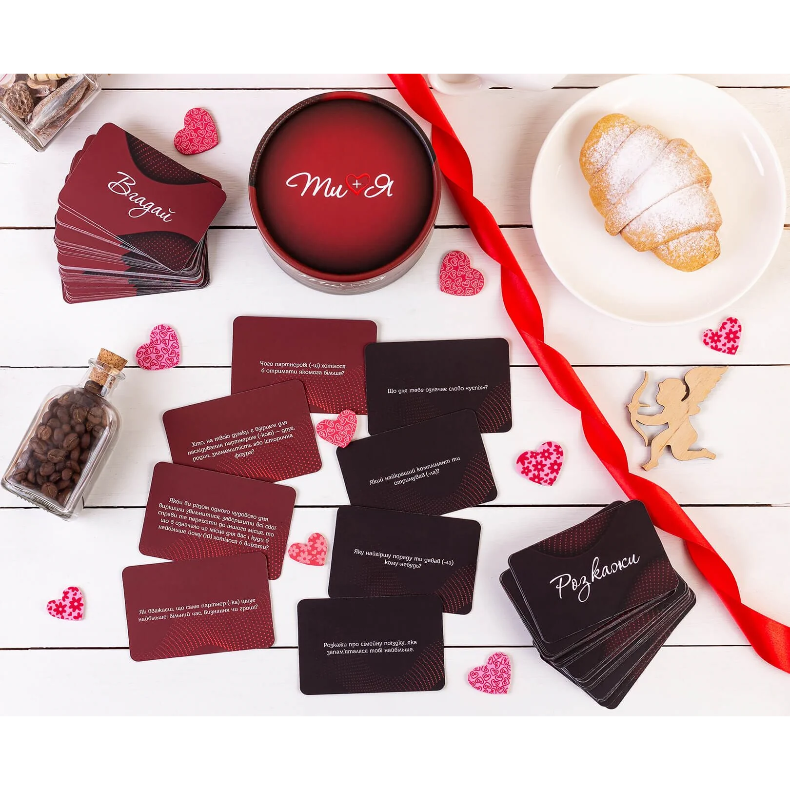 Опис: «Ти + Я» — гра, яка не тільки зможе розважити вас, але і стане справжнім сімейним психологом для ваших відносин. Відповідаючи на небанальні, іноді несподівані запитання, ви дізнаватиметеся щось нове про свого партнера і про самого себе. Гра допомагає зробити відносини більш розкутими, знайти нові теми для обговорення, підштовхнути до цікавої розмови.