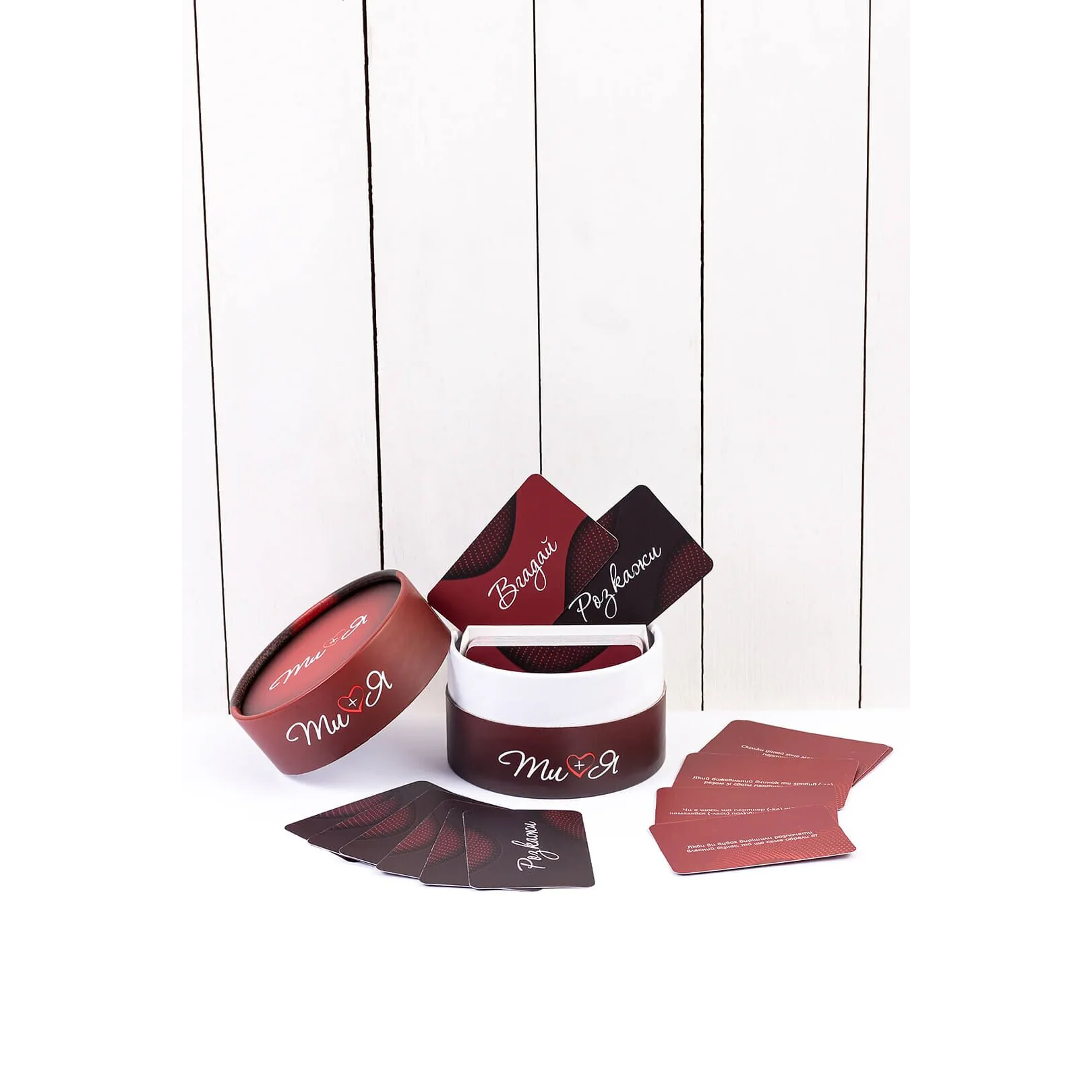Стисло про правила: Тягніть картки з різних колод і за чергою відповідайте на запитання. Витягли картку «Розкажи» — відповідаєте на запитання, яке стосується вас. Дісталася картка «Вгадай» — намагаєтеся правильно відповісти про вашого партнера.