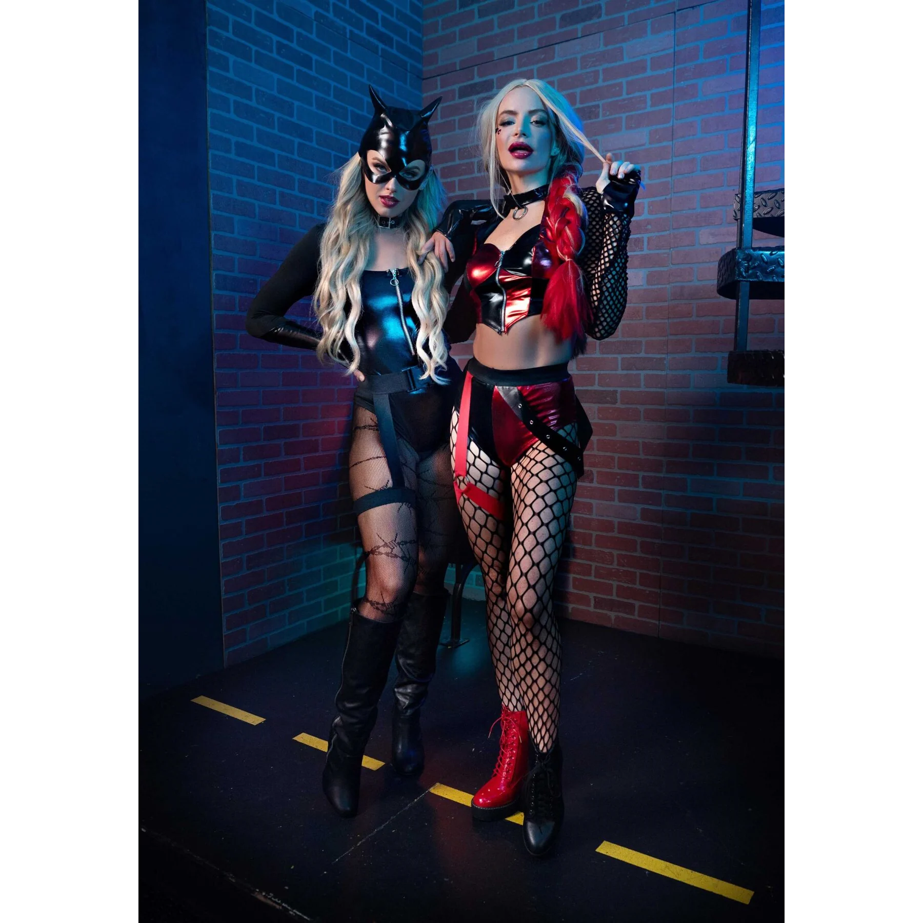 Боді з довгим рукавом та імітацією мітенок виконано з еластичної гладенької тканини, яка гарно та щільно облягає тіло. Будьте впевнені: у цьому боді всі ваші вигідні сторони будуть підкреслені найкращим способом! Напівоголена попка має чарівний і манливий вигляд. Застібка-блискавка спереду чудово виконує функцію трансформації костюма: розстебніть змійку трохи більше — і у вирізі будуть видні спокусливі півкулі грудей. Застебніть до кінця — і ліф буде слугувати корсетом, підтримуючи груди. Комір-чокер із грубою застібкою та широкі ремені на талію та стегно дуже доповнюють образ. Маска кішечки на пів обличчя та гострі вушка відсилають до героїв Марвел.