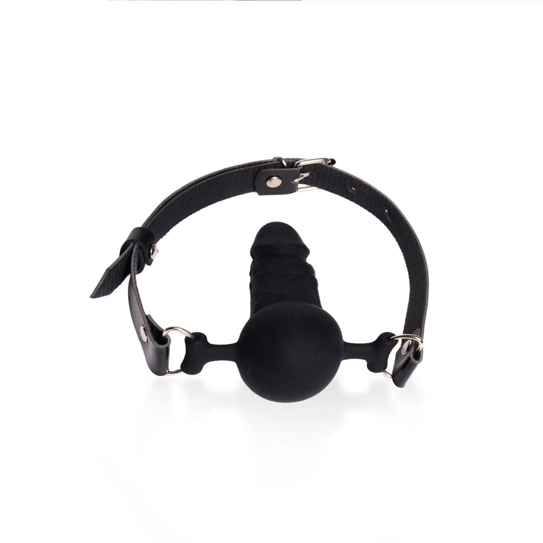 Кляп силіконовий з фалоімітатором Art of Sex – Phallus, екошкіра, чорний