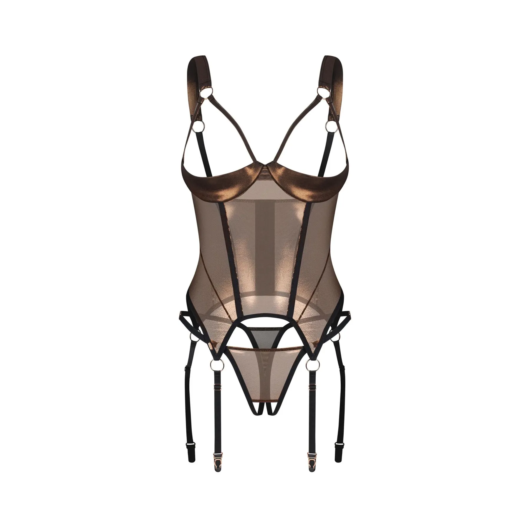 Корсет Obsessive Soranna cupless corset & crotchless thong