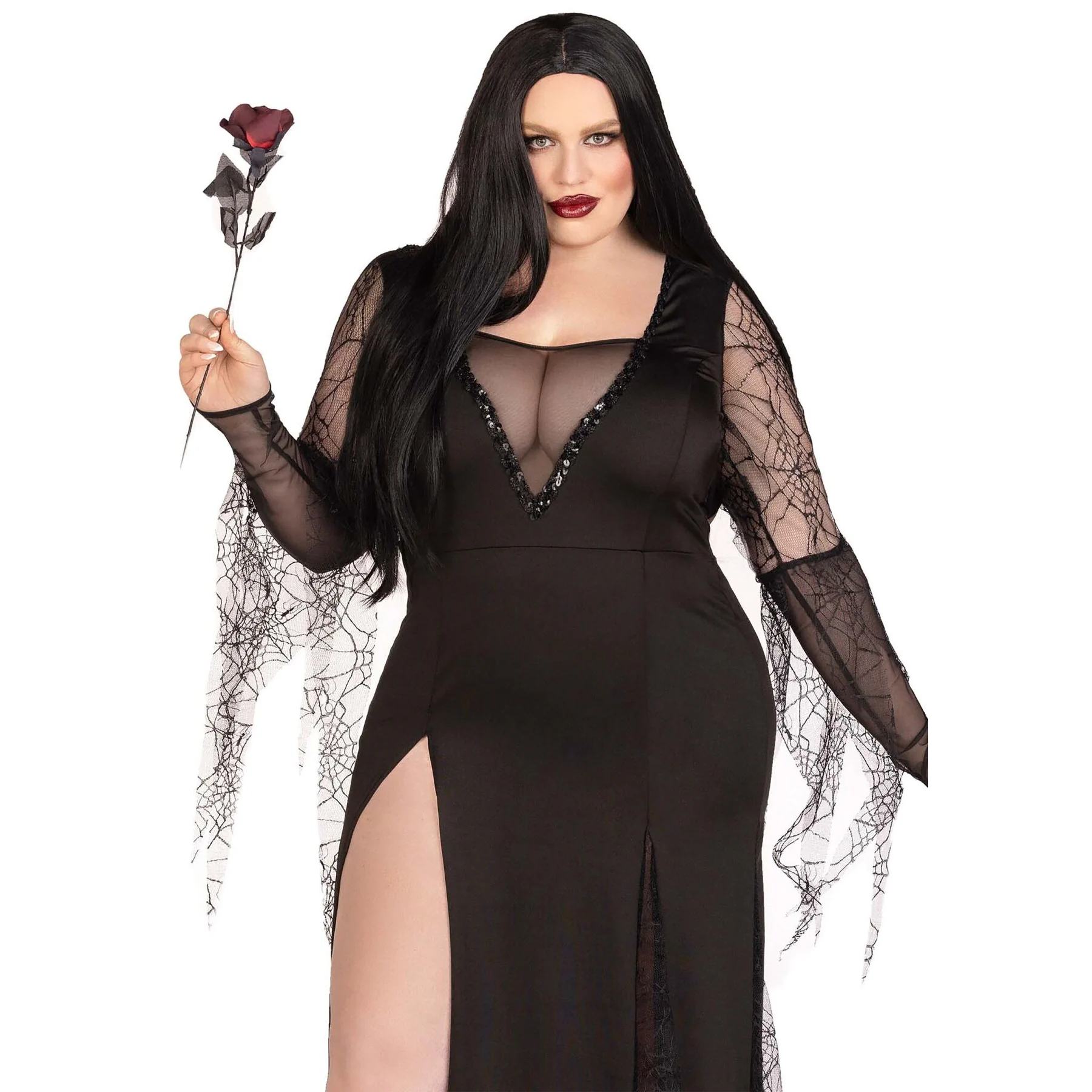 Костюм Мортіші Аддамс Leg Avenue Sexy Spooky Morticia чудово пасує з довгою чорною перукою. Додайте до образу червону помаду — ви будете абсолютно чарівні.