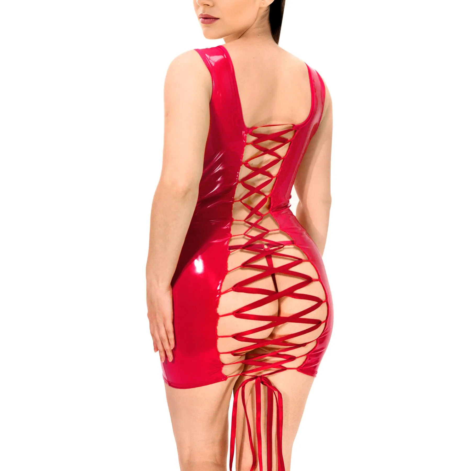 Модель виконана з еластичного вінілу, який ефектно облягає фігуру й красиво відбиває світло. Матеріал тримає форму, підкреслює контури та створює відчуття другої шкіри, посилюючи візуальний ефект.