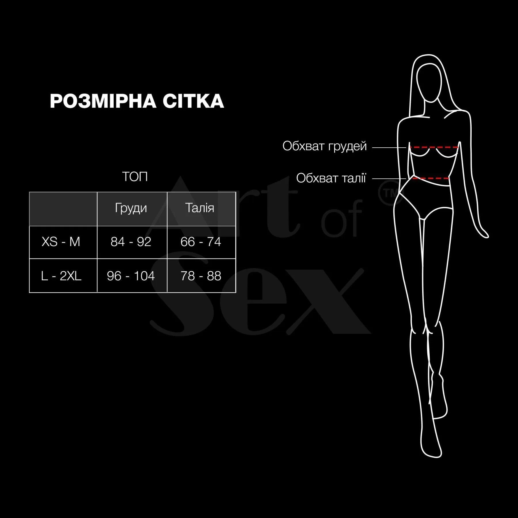 Топ чудово поєднується зі спідницями, брюками, шкіряними виробами, а також може стати частиною сценічного, клубного або фетиш-образу. Підходить для фотосесій, тематичних заходів і вечірніх виходів.