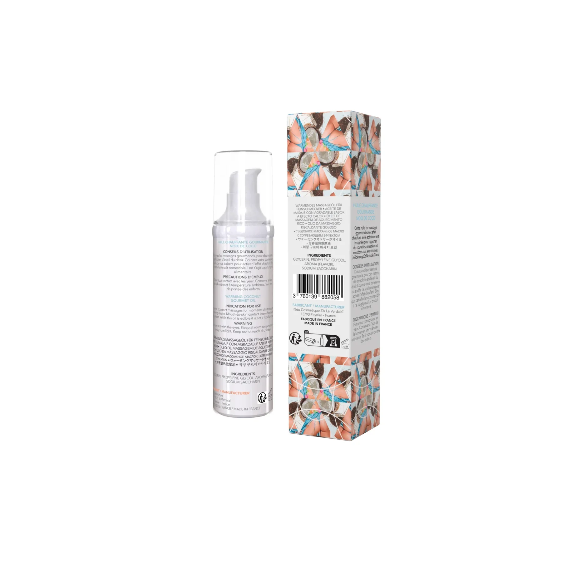 Пробудити пристрасть і бажання з цією розкішною масажною олією. Збудливий запах кокоса залишиться на вашій шкірі разом з солодким смаком і відчуттям тепла. Ця олія має кілька приємних особливостей: