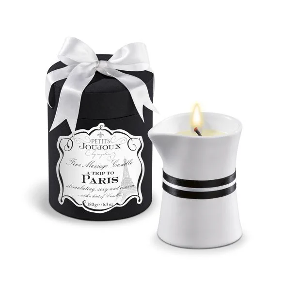 Хто не мріяв про чарівну ніч кохання у романтичному Парижі? Рекомендуємо купити масажну свічку Petits Joujoux – Paris – Vanilla and Sandalwood, хвилюючий аромат якої відправить вас прямо у місто кохання та еротичних пригод! Запалюйте її швидше і насолоджуйтесь теплим ароматом ванілі та сандалу. Розтанув, свічка перетворюється на теплу олію для ніжного масажу.