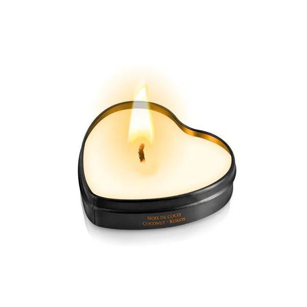 Масажна свічка у вигляді серця Plaisirs Secrets Coconut (35 мл) зі збуджуючим ароматом буде не лише чудовим доповненням до романтичного вечора, але й подарує усі можливості для еротичного масажу. Масажна свічка при нагріванні перетворюється на якісне масажне масло, яке легко втирається, зволожує і надає блиску шкірі, а також сприяє приємному розслабленню та задоволенню. Свічка подарує рівне і затишне світло, і наповнить кімнату ніжним ароматом.