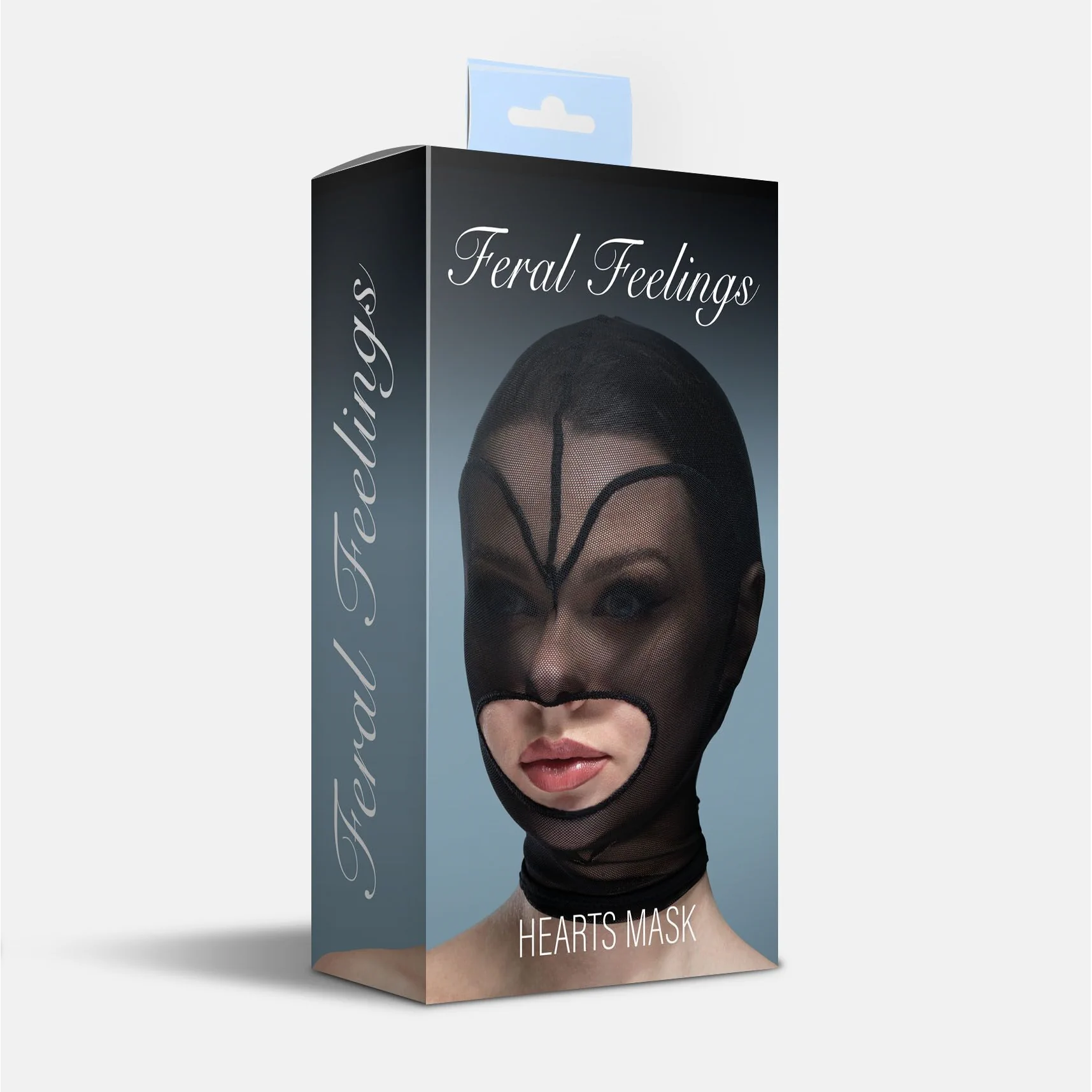Маска серце сітка з відкритим ротом Feral Feelings – Hearts Mask Black/Black
