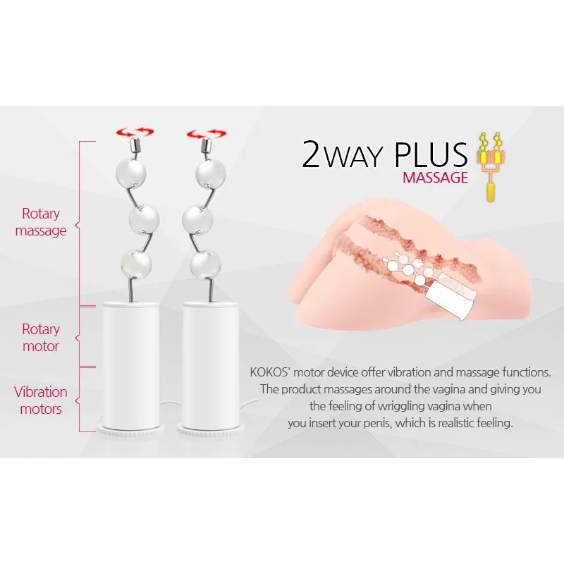 Серія 2WayPlus забезпечена двома моторами з ротацією і вібрацією. Розташовані по обидва боки від каналів, вони створюють м’який тиск і стиснення – точно таке саме, як під час бурхливого жіночого оргазму.