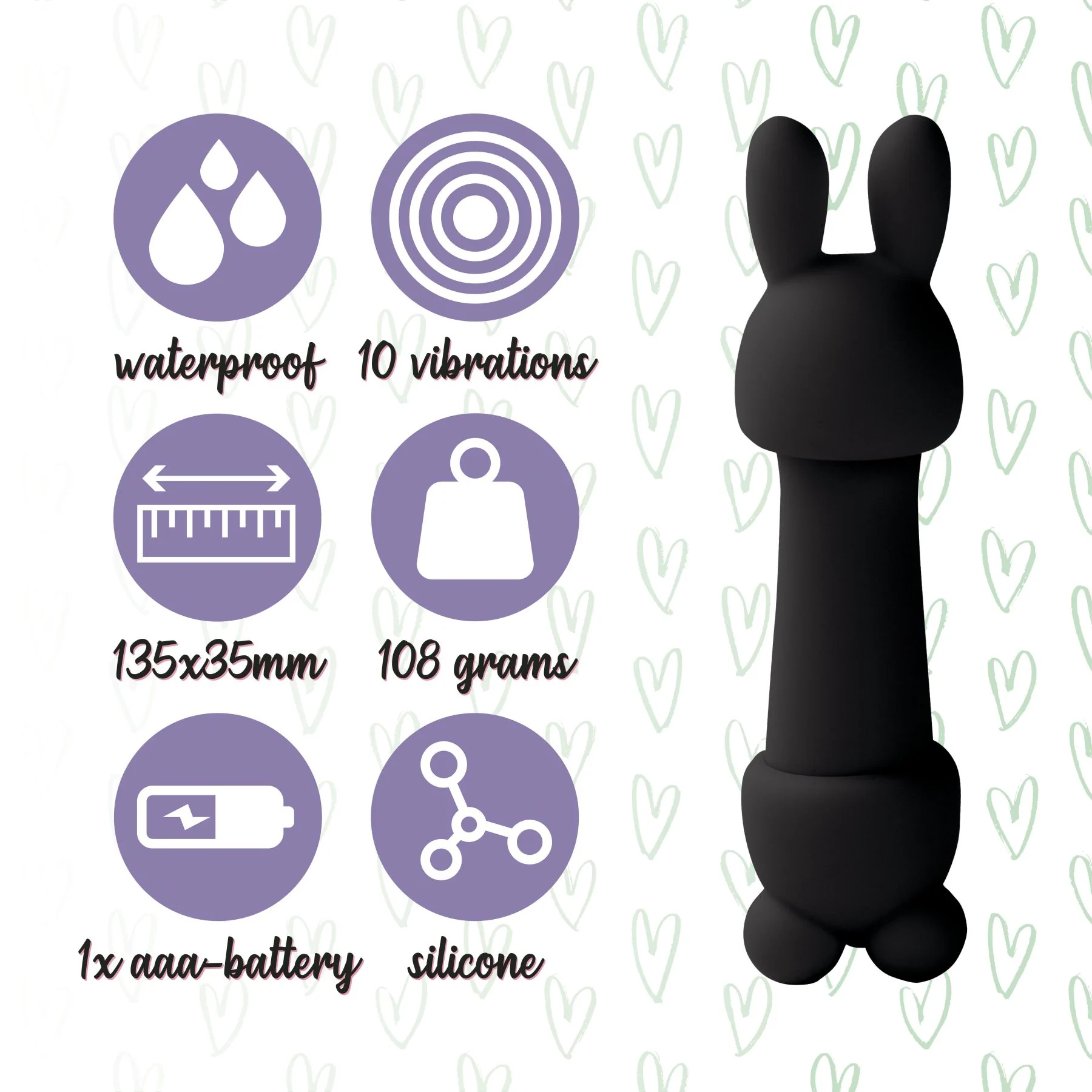 Ніжний масаж або хвилююча гра з вібрацією – Mister Bunny підійде для всього! Пропонуємо придбати міні-вібратор FeelzToys Mister Bunny Black з двома насадками і цікавими режимами вібрації. Він зручно лягає в руку і здатний як розслабити, так і збудити – все залежить від того, що саме ви будете масажувати. 10 незвичайних патернів вібрації і три м'яких силіконових насадки урізноманітнюють процес і ніколи не набриднуть!