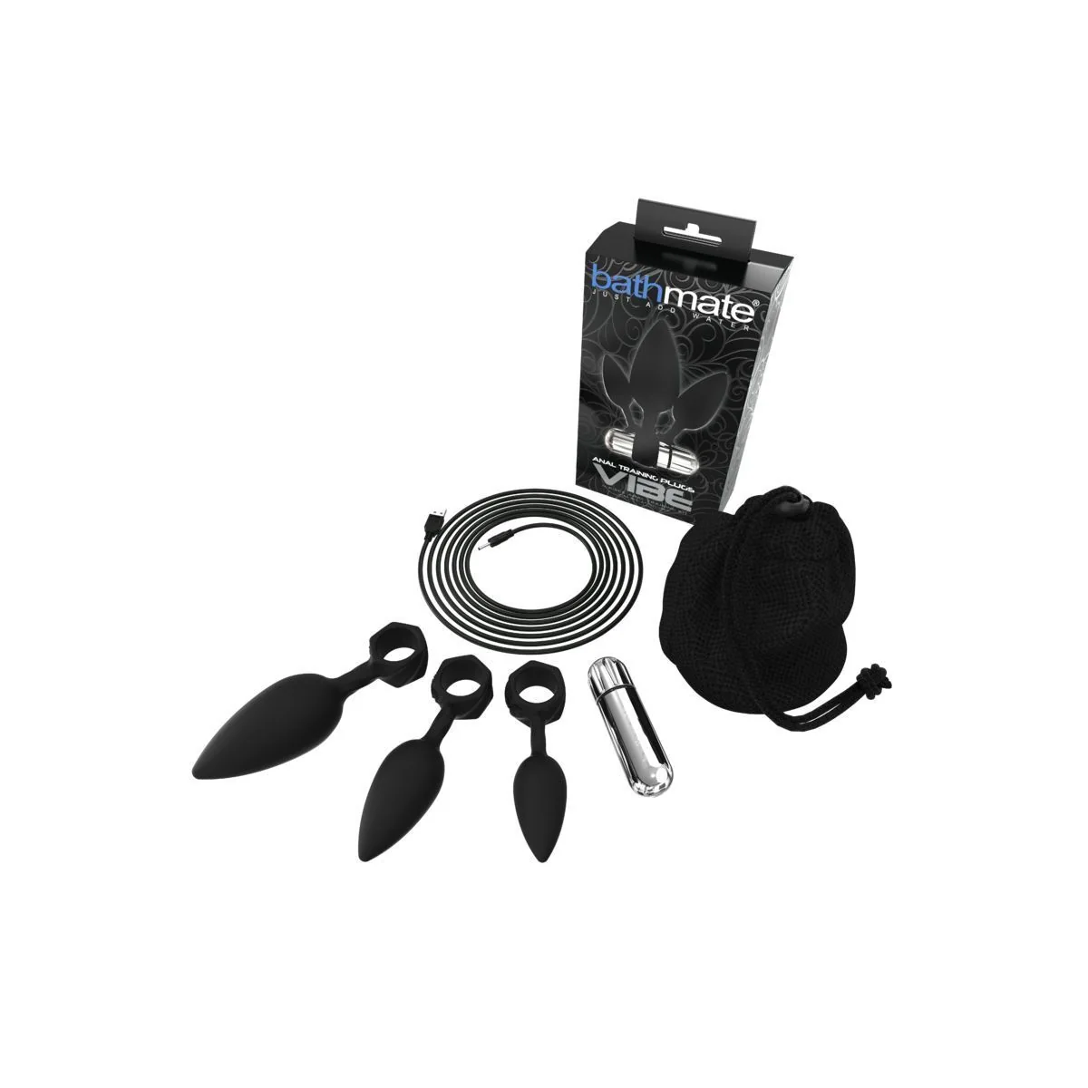Рекомендуємо придбати набір з 3 анальних пробок Bathmate Anal Training Plugs VIBE. Всього у набір входить три анальні пробки різного розміру і діаметру. Вони виконані з безпечного гіпоалергенного силікону, який можна використовувати з будь-якою змазкою на водній основі, а очищувати водою з милом і спеціальним засобом для очищення. Форма пробок класична – звужена на кінці – що забезпечує комфортне введення. А щоб дістати девайс, кожна іграшка забезпечена зручним кільцем-ручкою, яка також служить у якості стопера або підтримкою для спеціальної вібропулі Bathmate Vibe Bullet, яку йде у комплекті. Є можливість використовувати кулю в якості самостійної іграшки – вона має приємну вібрацію і повністю водонепроникна. Девайс з вбудованим акумулятором і заряджається від USB-кабелю.