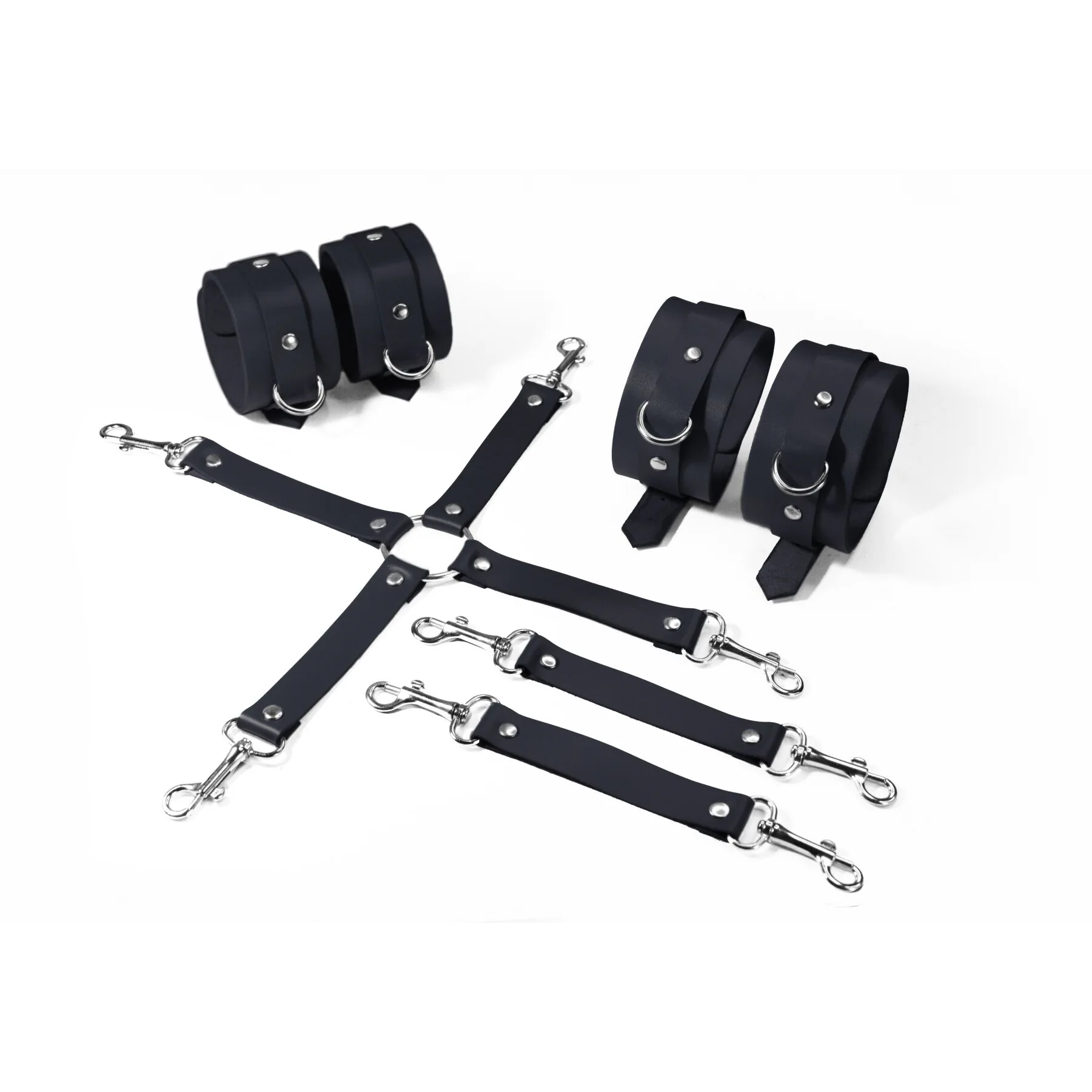 Хрестовина на карабінах допомагає забезпечити ідеальну фіксацію без складних і громіздких конструкцій. Конектор зроблений з натуральної міцної шкіри, що дає змогу надійно, але водночас гнучко зафіксувати і руки, і ноги в багатьох положеннях: ззаду або спереду, знизу або зверху, як підкаже вам фантазія.