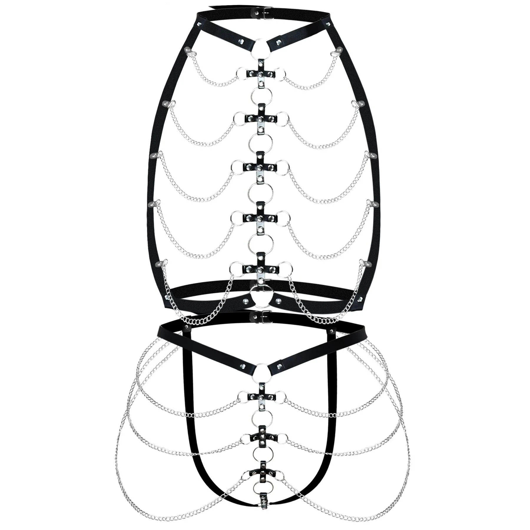 Шкіряна портупея має регульовані ремені, щоб створити ідеальну комфортну посадку по фігурі і підкреслити красу тіла та акцентувати увагу на ваших формах. Шкіряні трусики високої посадки чудово сидять на фігурі, створюючи ефектний і сексуальний вигляд. Металеві ланцюжки, які прикрашають портупею і трусики, додають елемент екстравагантності та створюють загадковий образ, який вигідно виділяє вашу жіночність та сексуальність.