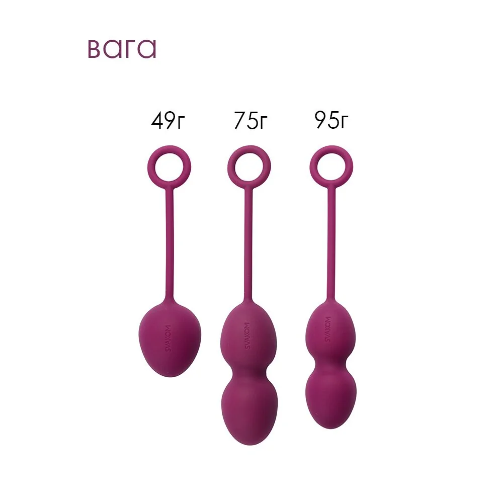Усі вагінальні кульки Svakom покриті безпечним силіконом та оснащені петелькою для вилучення. Тренуючись із набором вагінальних кульок зі зміщеним центром ваги Svakom Nova, вже за кілька місяців ви помітите реальні зміни!