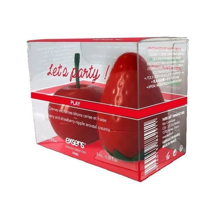 EXSENS Crazy Love Cherry зі смаком вишні і EXSENS Oh My Strawberry зі смаком полуниці – це збуджуючі крема для сосків, які абсолютно безпечні при злизуванні або ковтанні. Більш того, вони мають дуже приємний аромат і смак! Тому що збуджуючі крема EXSENS ідеально підходять для попередніх ласк або інтимних ігор.