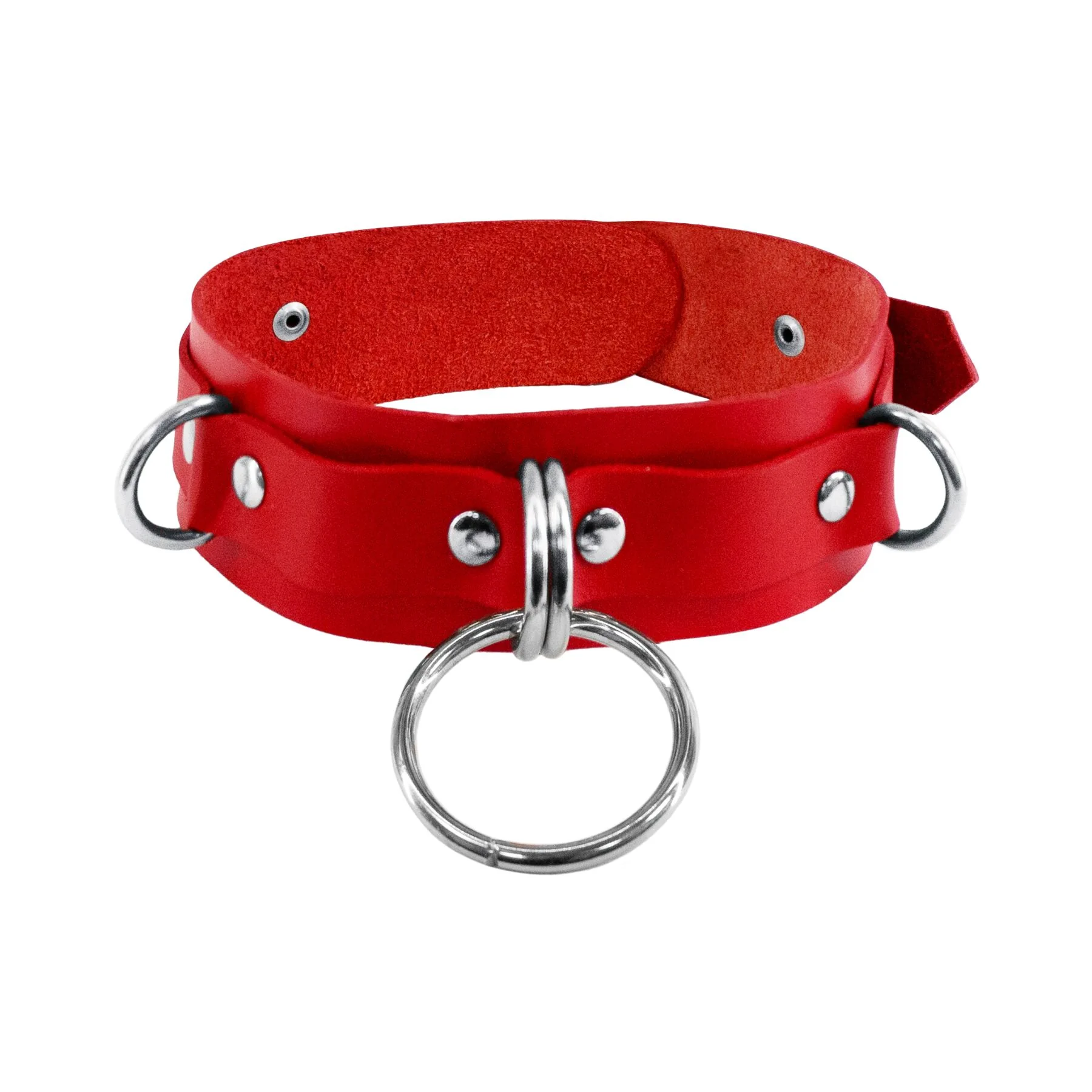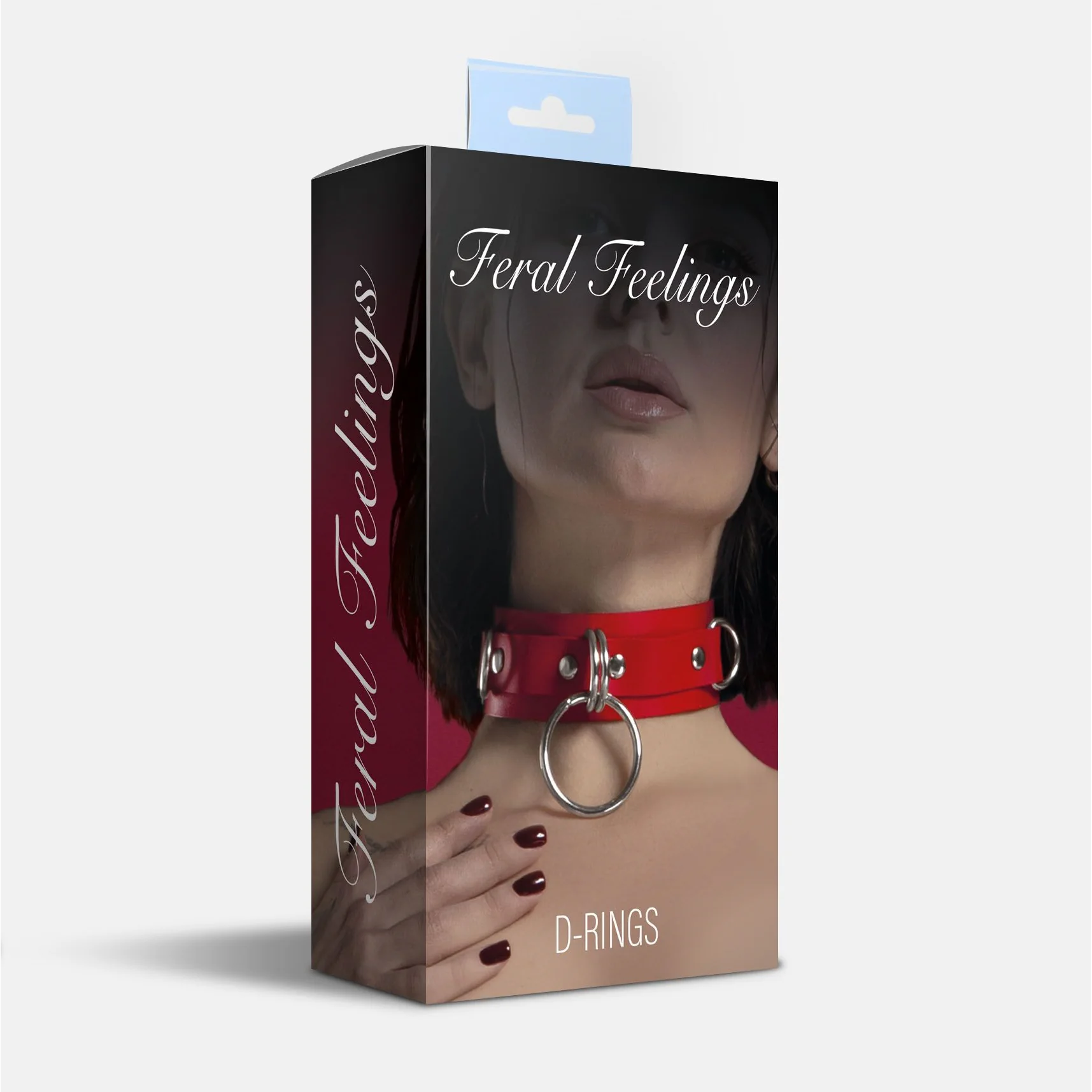 Нашийник для фіксації з натуральної шкіри Feral Feelings – D-Rings Red