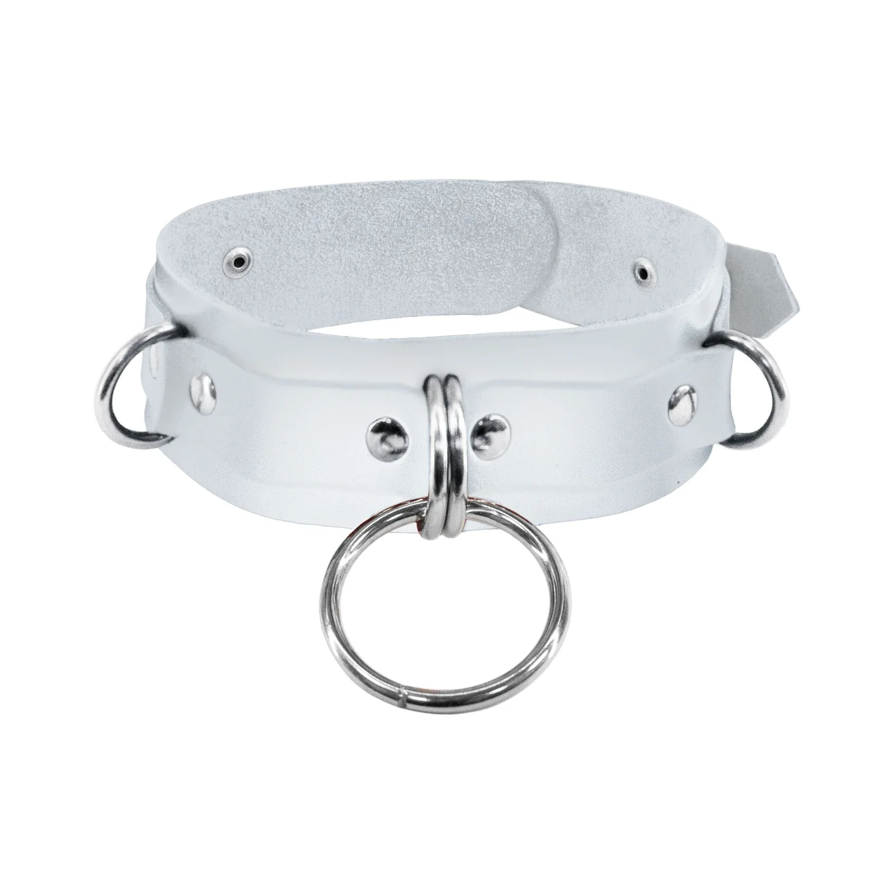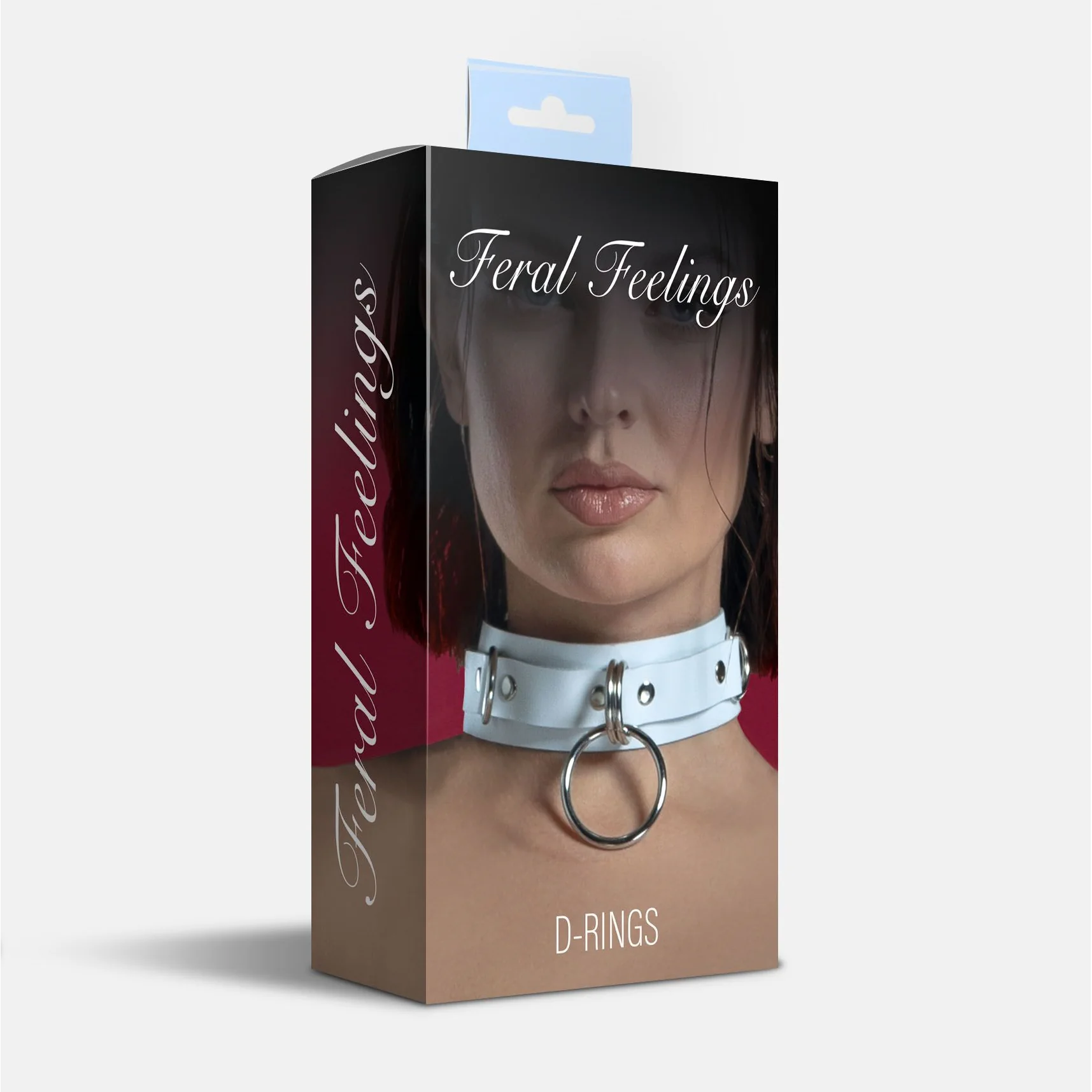 Нашийник для фіксації з натуральної шкіри Feral Feelings – D-Rings White