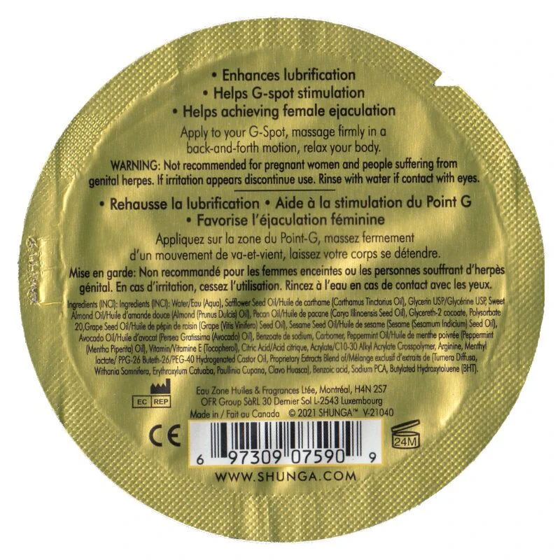 Склад: Aqua, Safflower seed oil, Glycerin, Almond oil, Acrylates/C10-30 alkyl acrylate crosspmer, Grape seed oil, Sesame seed oil, Avocado oil, Glycereth-2 cocoate/Benzoic acid/Sodium PCA, L-Arginine, Peppermint oil, Menthyl lactate, Damiana extract, Horny goat weed extract, Vitamin E.