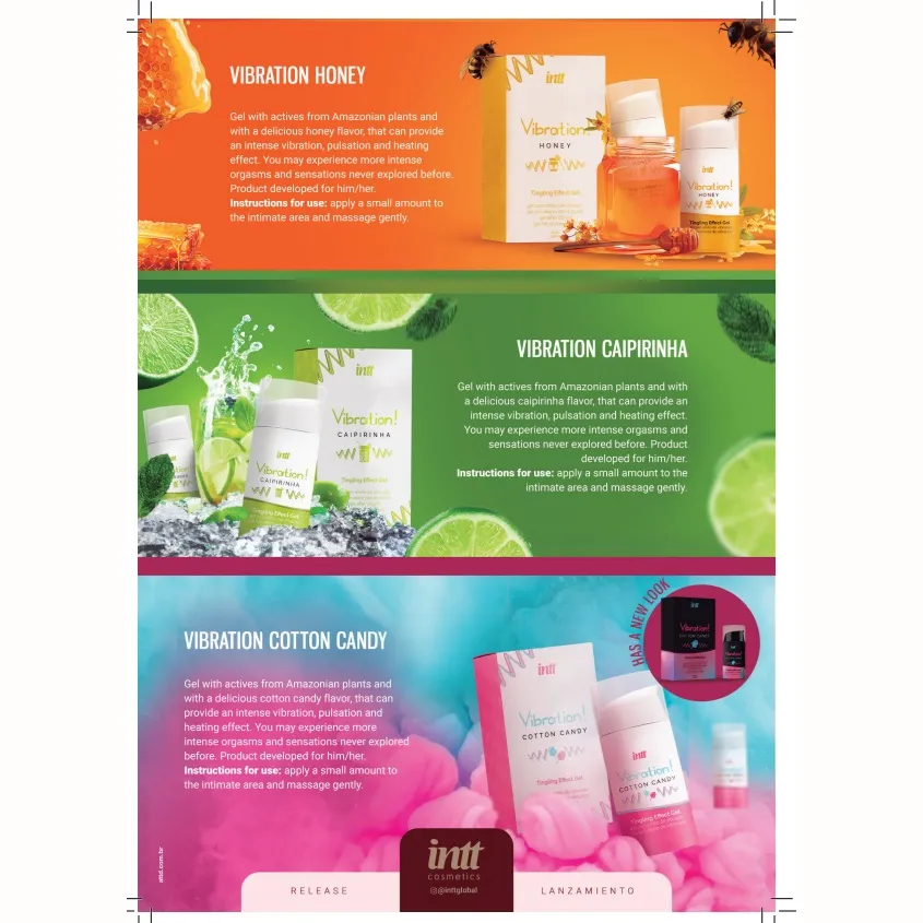 Він був розроблений з амазонських рослин, забезпечує унікальне поколювання, має пульсуючий та зігріваючий ефект і його приємно цілувати. Солодкий аромат та смак солодкої вати спокусять вас на оральний секс!