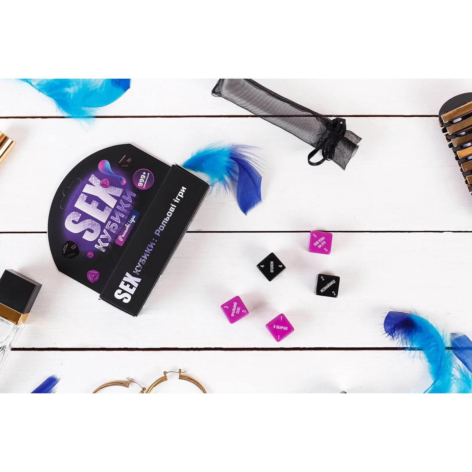SEX-Кубики: «Рольові ігри» – це ваша можливість втілити найсміливіші і найпотаємніші сексуальні фантазії і, в той же час, спробувати щось кардинально нове! Перед вами п'ять кубиків, кидок яких відкриє для вас двері у світ домінування і підпорядкування – БДСМ, і занурить в його пристрасну атмосферу. У вашому розпорядженні 999+ варіантів розвитку подій. Чи готові зробити перший кидок?