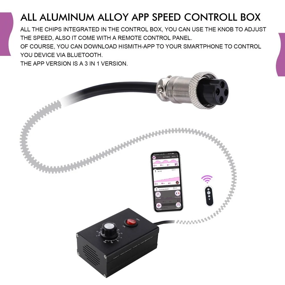 Застосунок для смартфона Hismith інтуїтивно зрозумілий та зручний, доступний для iOs та для Android. Швидко знаходить гаджет та встановлює надійне з’єднання через блютуз. Застосунок відкриває доступ до величезної кількості режимів роботи машини. Ви можете писати відгуки на них прямо в процесі! Застосунок Hismith — це ціла спільнота любителів секс-машин, де можна додаватися в друзі, листуватися, дізнаватися новини та, звичайно, передавати керування своєю машиною на будь-якій відстані! У комплекті — детальна інструкція з QR-кодом для завантаження застосунку (застосунок також легко знайти й у Google Play або App Store самостійно).