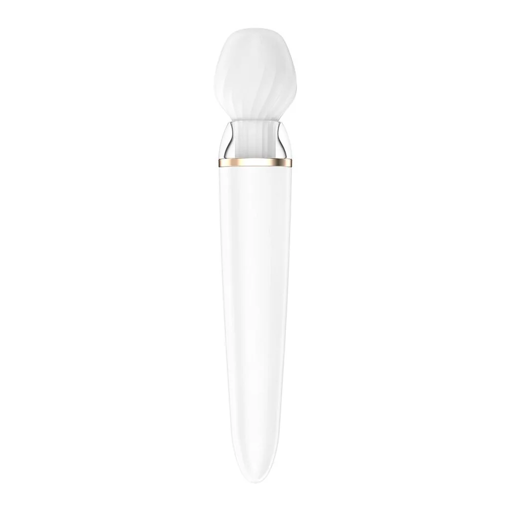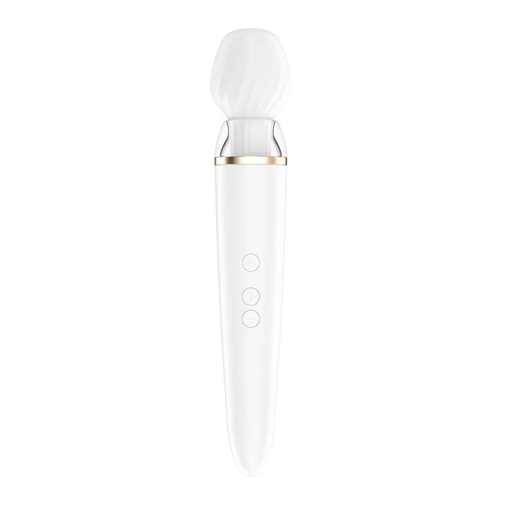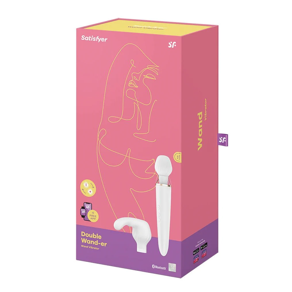 Смарт вібромасажер зі змінною головкою Satisfyer Double Wand-er виглядає просто чудово! Стильний пластиковий корпус із приємними деталями, зручні кнопки та проста зміна насадок — цей масажер точно не простоюватиме без діла!