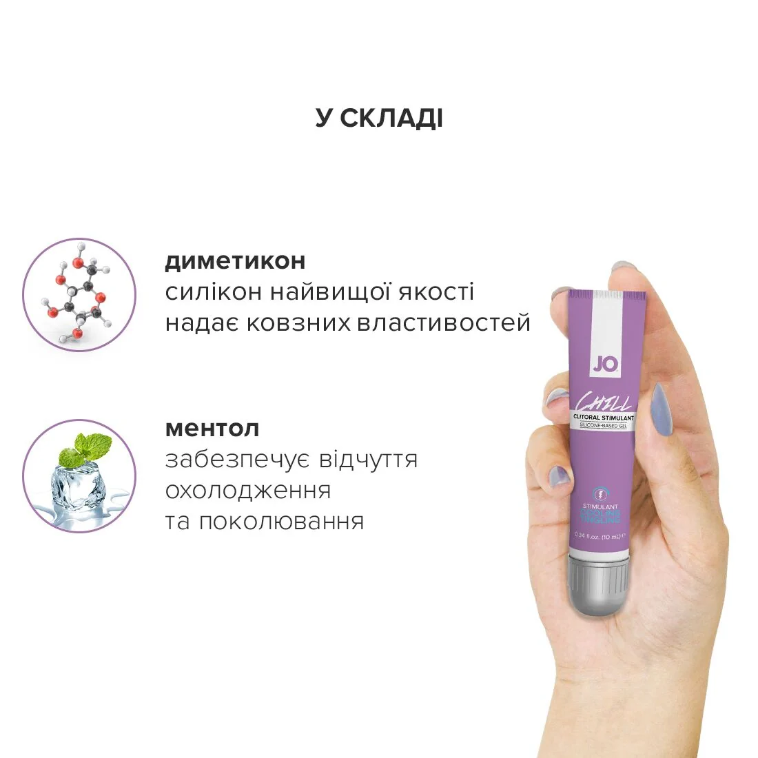 Стимулювальний гель для клітора JO CHILL COOLING забезпечує тривале ніжне ковзання; виготовлений із високоякісного силікону, не містить консервантів і не боїться води, даючи можливість втішатися в нестандартних умовах. Прекрасна ідея для тих, хто шукає незвичайних відчуттів: легке поколювання, як холодний електричний струм, зробить самостійні або спільні з партнером пестощі ще інтенсивнішими. Крім того, такий гель має збуджувальну дію і чудово підійде для «швидкого сексу». Ефект залежить від індивідуальної чутливості.
