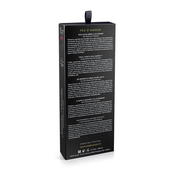Гель для кліторальної стимуляції Plaisirs Secrets Stimulating Female Gel Feu Damour (30 мл) – цей продукт був розроблений спеціально для жінок. При нанесенні на клітор, ви відчуєте приємне і ніжне тепло, яке збільшує силу та кількість оргазмів. А також ваш партнер відчує неймовірний ефект від використання цього гелю, який дарує вищий ступінь задоволення.