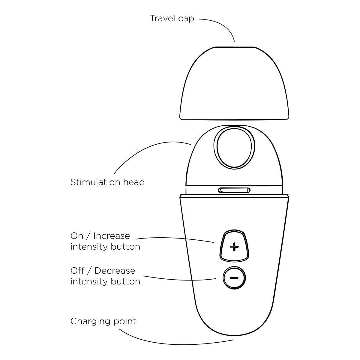 Дорожній ковпачок. Головка стимулятора, захищена від пилу та бруду, завжди залишається чистою.