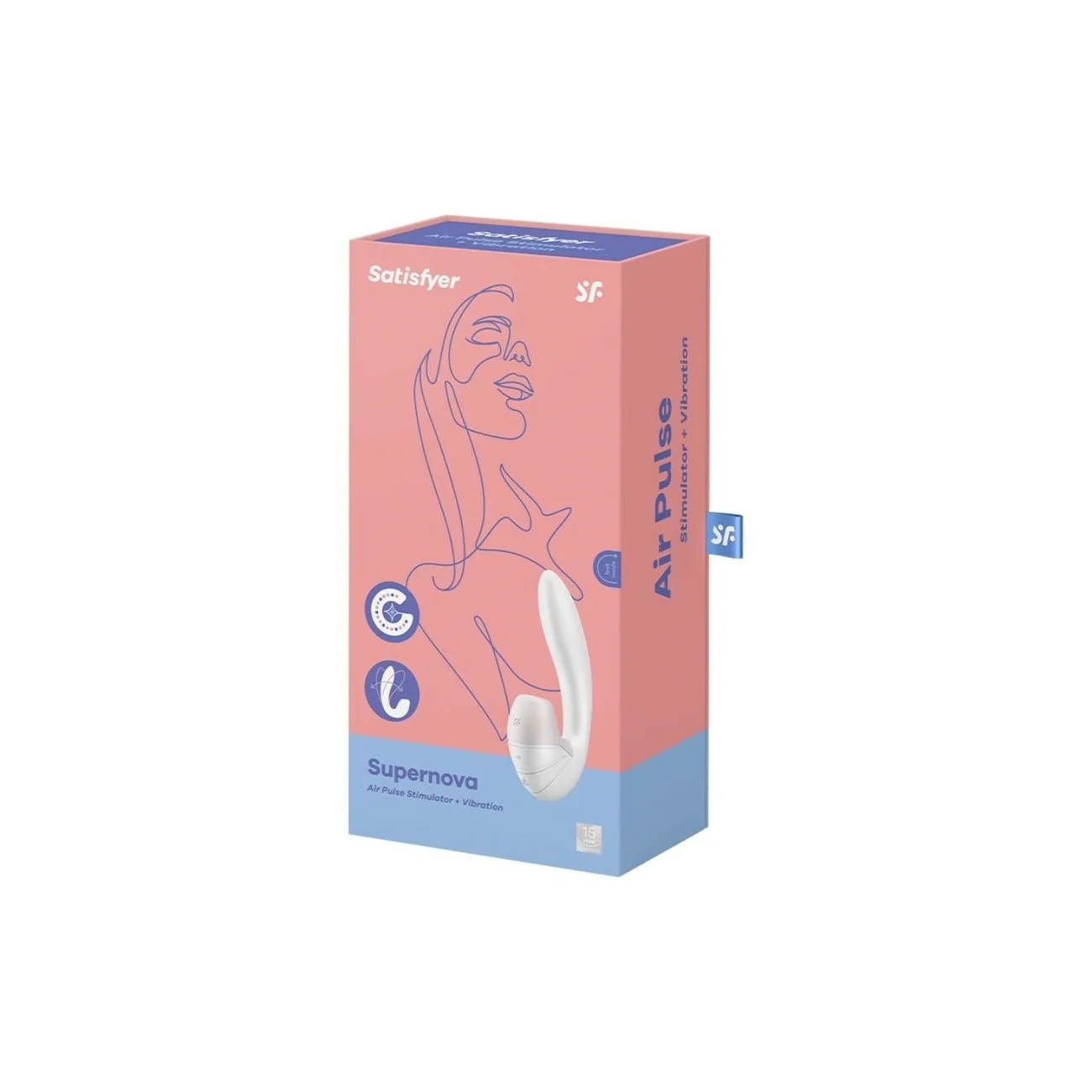 Вакуумний вібратор Satisfyer Supernova спеціально створений для комфортних та ніжних пестощів. Стовбур його трохи загнутий для стимуляції точки G, а широкий розтруб захоплює додаткову зону навколо клітора для вакуумної стимуляції.