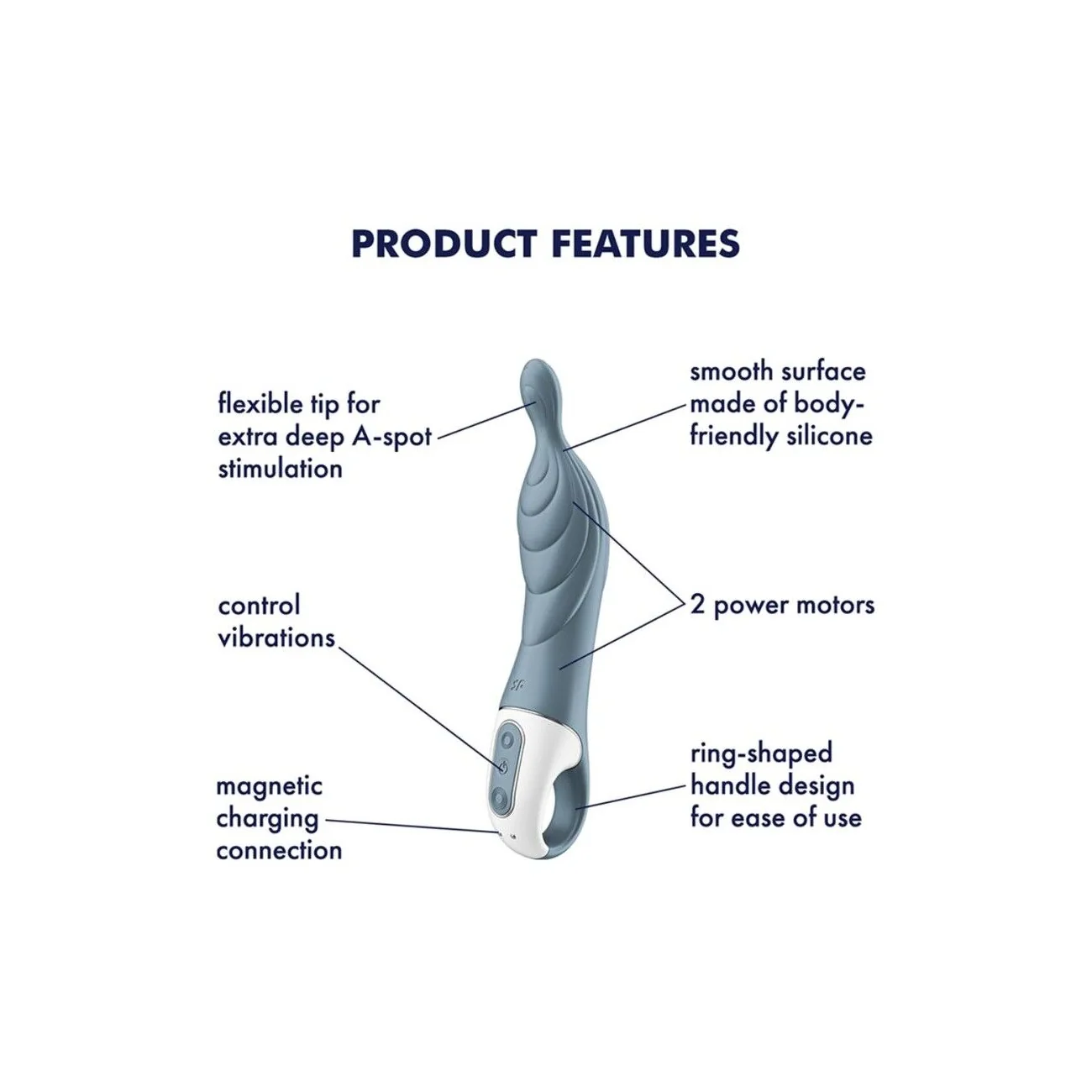 Унікальний дизайн цього вібратора розроблений для стимуляції точки А — скупчення нервових закінчень глибоко на передній стінці піхви. Вплив на неї призводить до швидкого збудження та особливо інтенсивних оргазмів! Вібратор для точки А Satisfyer A-Mazing 2 це: