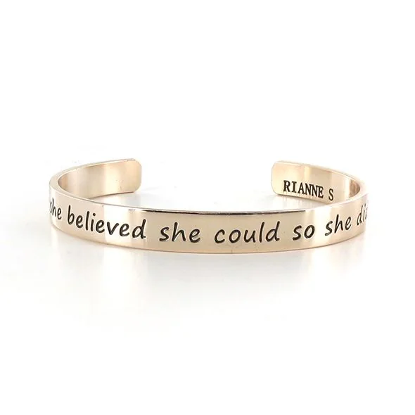 Напис на браслеті: "she believed she could so she did" – "вона вірила, що може, і вона зробила". Загальна довжина вібратора 21 см, довжина, що вводиться 12,5 см, діаметр 3,5 см. Кабель для зарядки в комплекті.