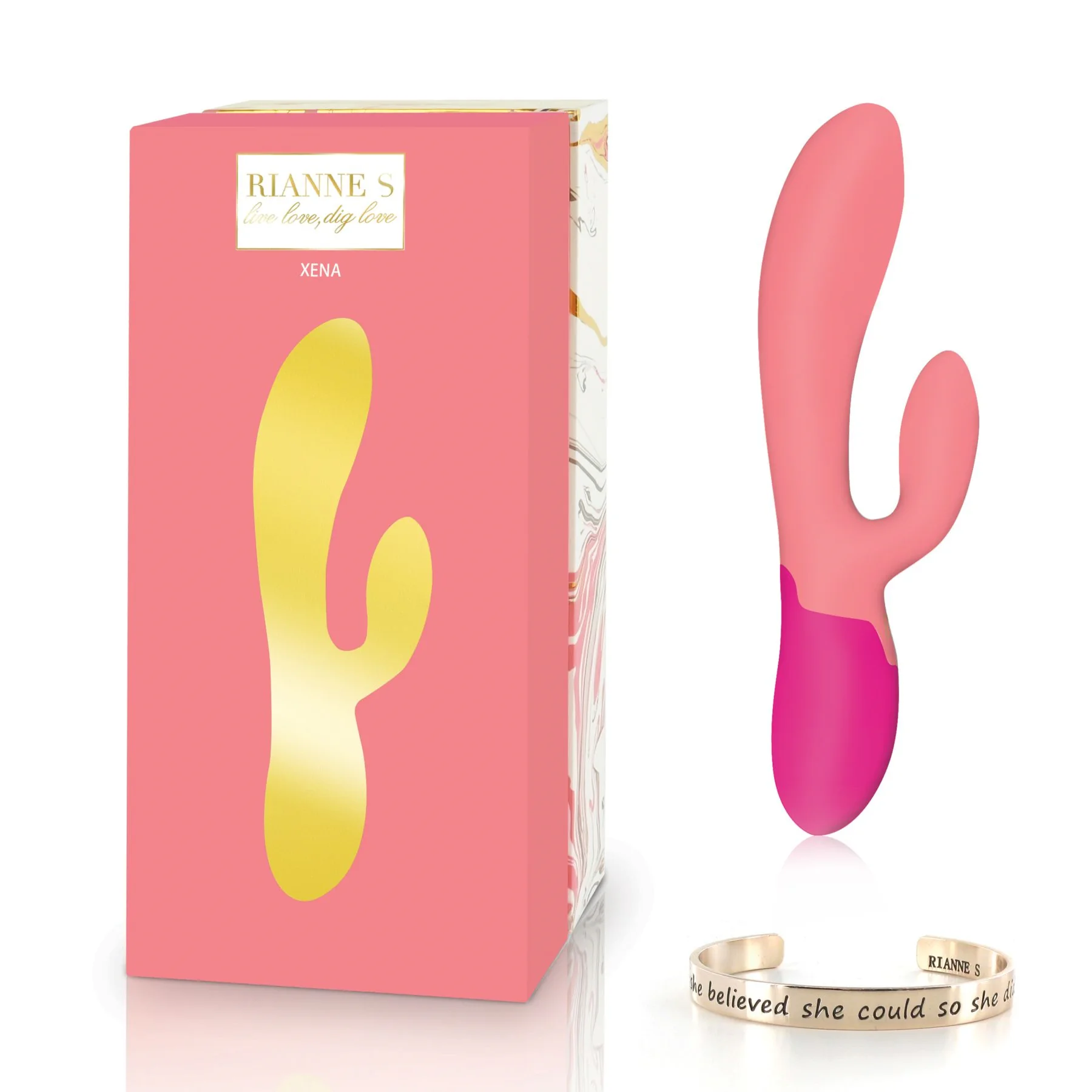 Любите щось гарячіше? Тоді вам варто купити вібратор-кролик з підігрівом RIANNE S – Xena Rabbit Vibrator Coral/Rose. Два потужні двигуни для подвійної стимуляції подарують вам вражаючу насолоду, а 10 режимів з регулюванням інтенсивності для кожного дозволять реалізувати всі фантазії. Функція підігріву додасть яскравості та комфорту! У подарунок — стильний металевий браслет із надписом.