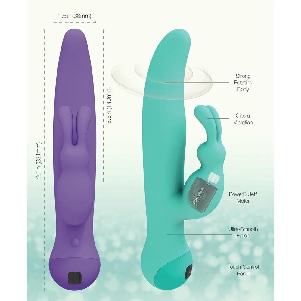 Вібратор повністю покритий преміальним силіконом, що робить його неймовірно приємним на дотик, безпечним і повністю водонепроникним. Перевірена форма кролика з довгими вушками дозволить вам відчути оргазм на всі 100% або навіть 200%. А голівка, що обертається, зробить вашу насолоду максимально глибокою і повною. Причому, управляти тілом вібратора і відростком-кроликом можна окремо! До речі, управління тут просто приголомшливе: це сенсорна панель, і потрібно всього лише провести по ній пальцем вгору або вниз для контролю вібрації відростка, або вліво-вправо, щоб регулювати вібрацію тіла.