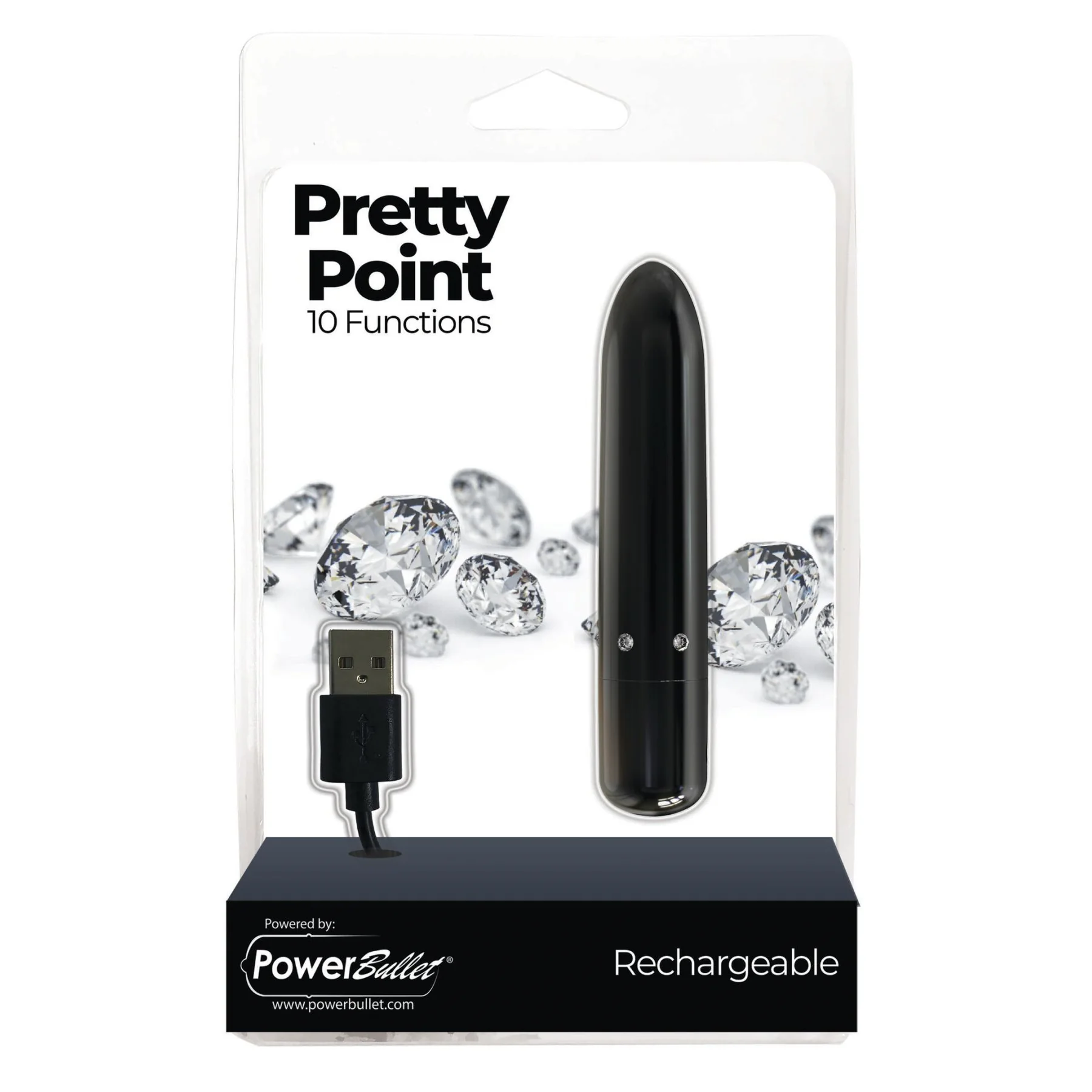Гламурна віброкуля PowerBullet – Pretty Point Rechargeable Bullet Black, прикрашена поясом кристалів, створена спеціально для насолоди. Глибокі та рокотливі вібрації PowerBullet, які варіюються від м'яких до найінтенсивніших, здатні привести вас до кульмінації за лічені хвилини. При цьому, маючи справді дуже потужну силу, двигун іграшки працює практично безшумно. Віброкуля підходить для стимуляції будь-яких ерогенних зон, для сольних та парних ігор, для клітора та для сосків. Все обмежене лише вашою фантазією.