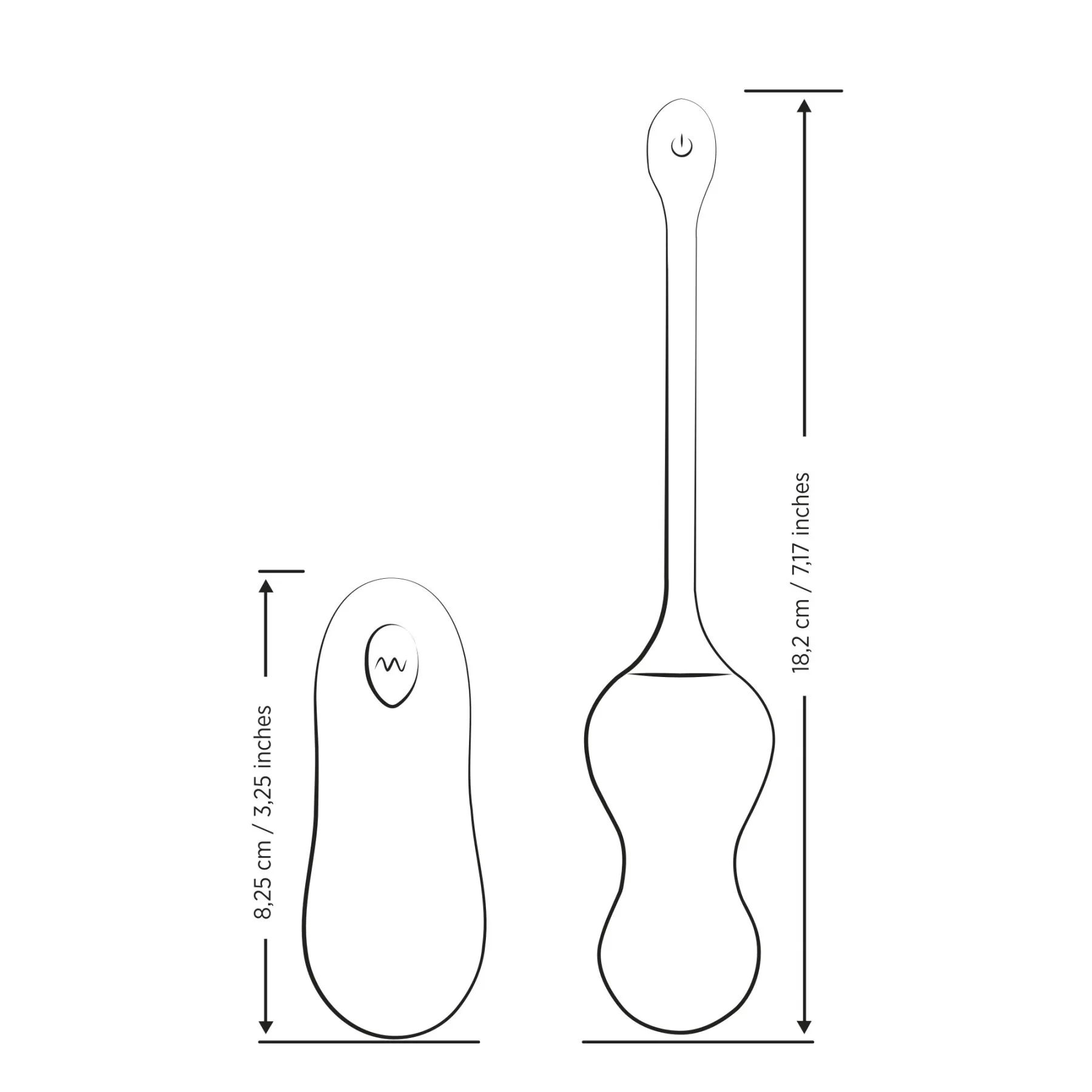 Розміри віброяйця: загальна довжина 18,2 см, ввідна довжина 7,5 см, діаметри кульок 3 та 3,5 см.