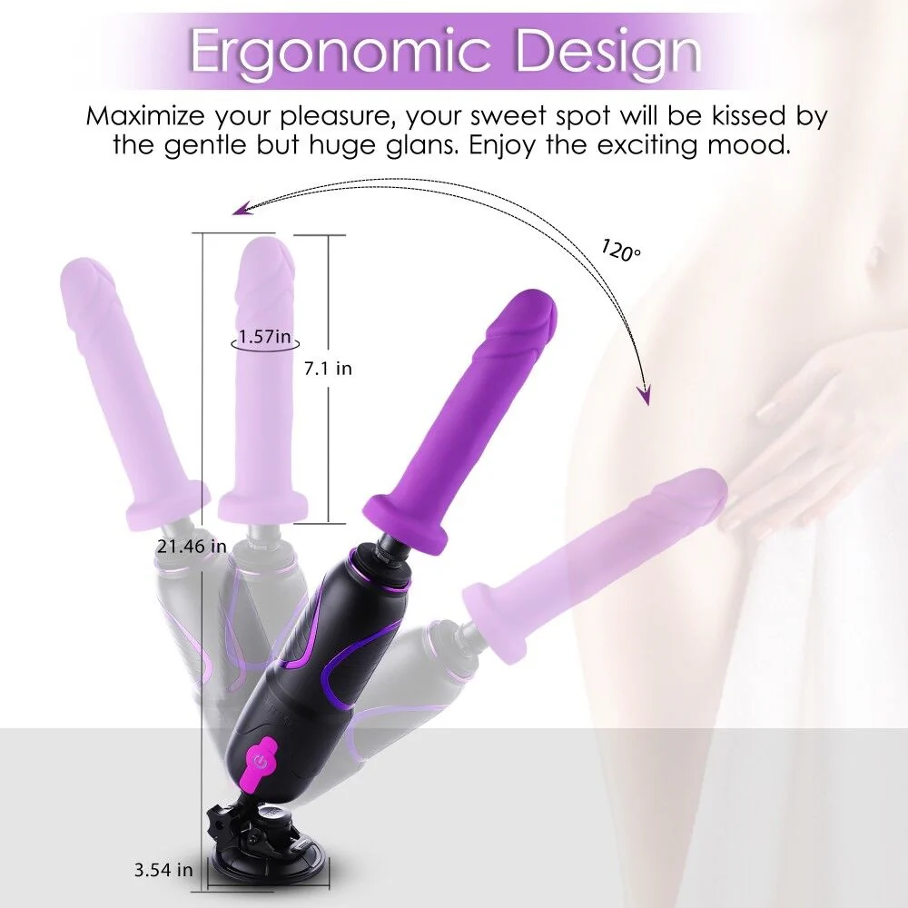 невисокий рівень шуму — 38–56 дБ; у комплекті — фіолетовий силіконовий фалоімітатор, пружний і приємний на дотик. Загальна довжина 18 см, робоча довжина 16 см, діаметр 3,5 см. Можна одразу братися до тестування секс-машини, без додаткових купівель аксесуарів! Рекомендуємо відразу придбати лубрикант на водній основі;