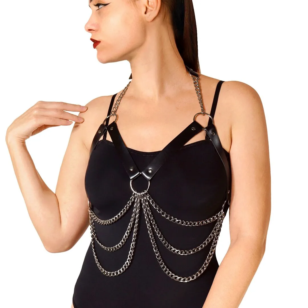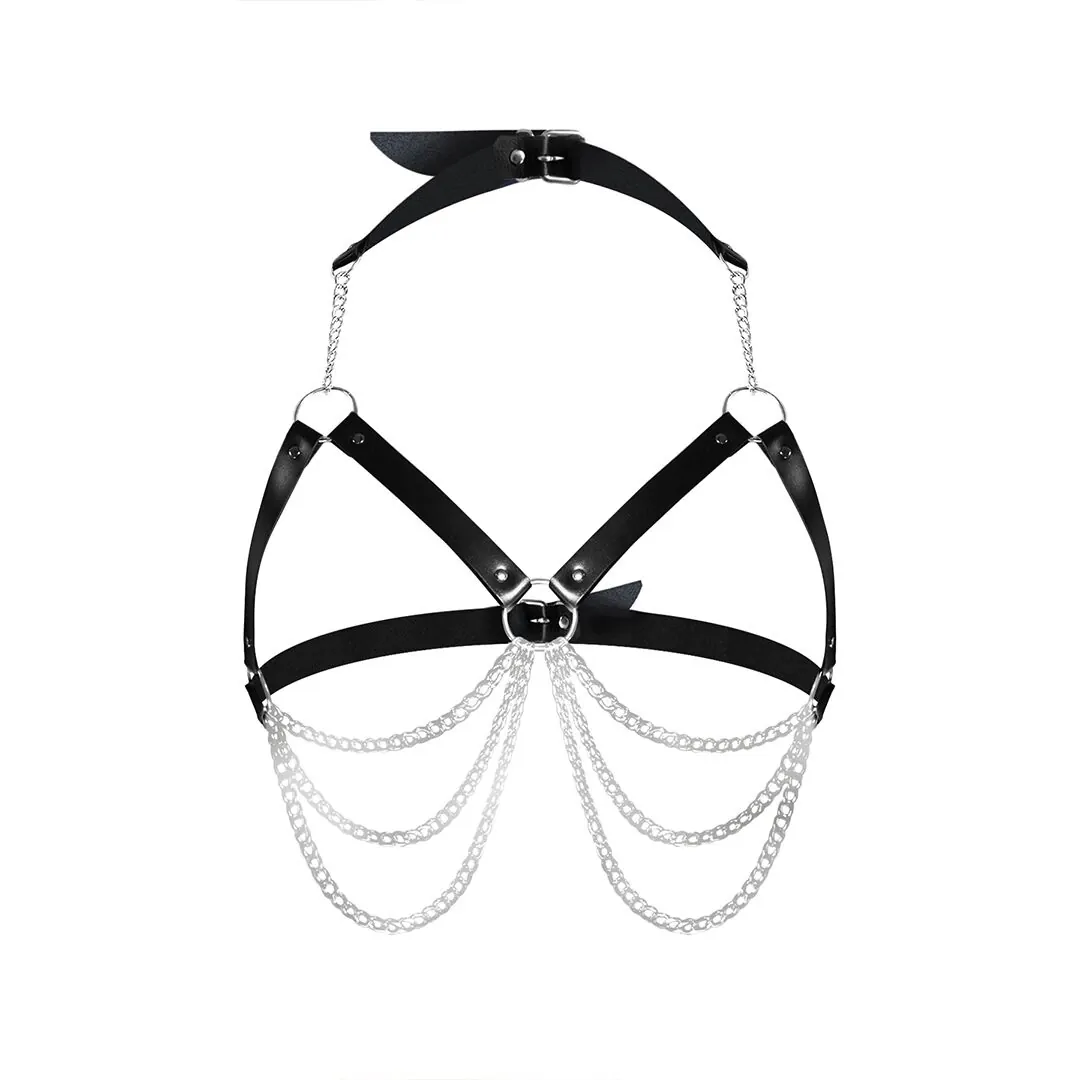Жіноча портупея з металевими ланцюжками – гарячий і красивий аксесуар, який стане родзинкою у вашому образі. З ним ви будете неймовірно спокусливі. Ця портупея створена для спокусливих дівчат, які випромінюють сміливість та впевненість у собі. Портупею можна поєднувати з рольовими костюмами або нижньою білизною. Ця портупея також сподобається прихильницям БДСМ і бондажу, любителям тематичних вечірок та косплею. Чорна портупея легко регулюється та не викликає дискомфорту під час носіння. Виконана з якісних та міцних матеріалів, вони витримає будь-яку вашу активність.